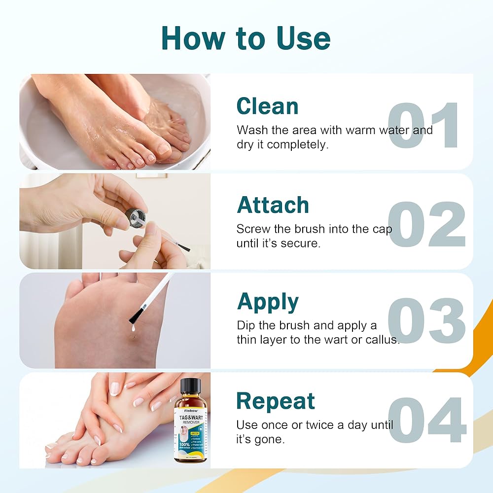 • تطبيق مناسب وسهل الاستخدام: تتيح الفرشاة المضمّنة تطبيقًا سهلًا ودقيقًا للسائل مباشرة على الثآليل. تجف الصيغة بسرعة وتخترق المنطقة المستهدفة. مع التعليمات المباشرة ، فإن دمج هذا العلاج في روتينك اليومي بسيط وخالي من المتاعب.