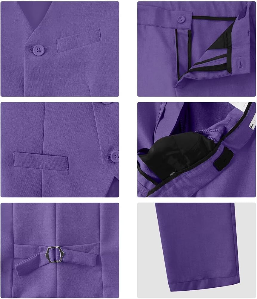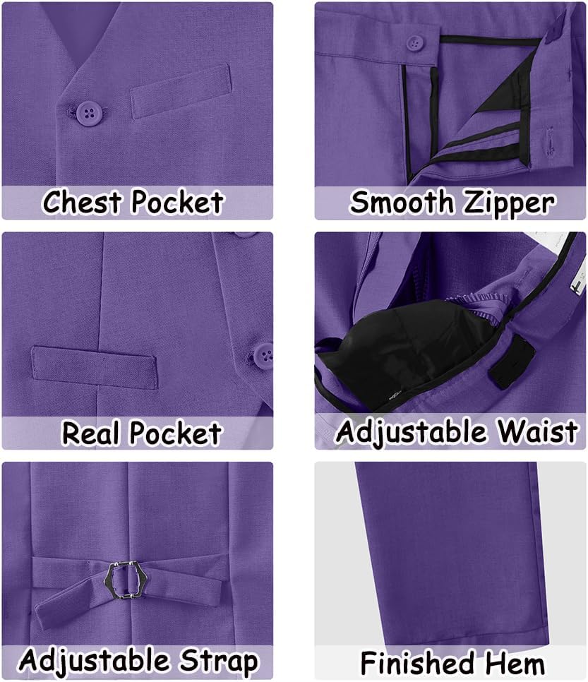- تصميم فريد وحديث: 3 أزرار سترة مع 3 جيوب حقيقية ، وجيب واحد على كل جانب من السراويل ، والأشرطة القابلة للتعديل الإنسانية على السترة والسراويل.