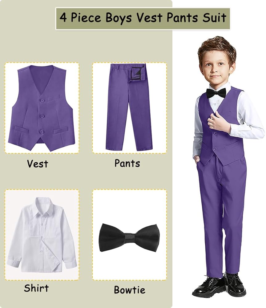 - كاملة 4 قطع البنين بدلات المجموعة: 1*سترة سوداء ، 1*السراويل السوداء ، 1*قميص أبيض ، 1*ربطة عنق أسود.