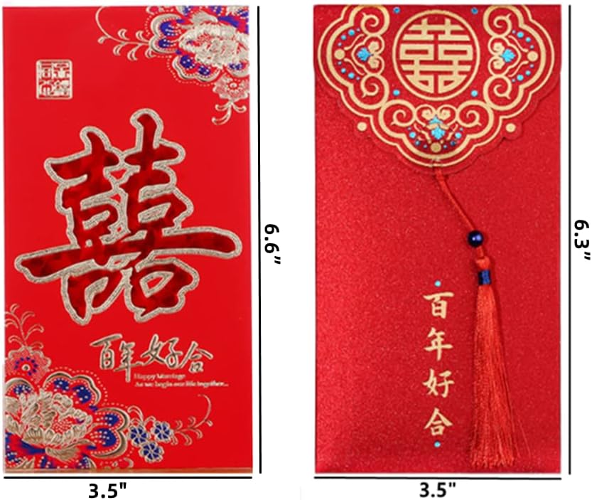 المقاس: مقاس ظرف الزفاف الأحمر حوالي 9 × 16 سم/3.5 × 6.3 انش