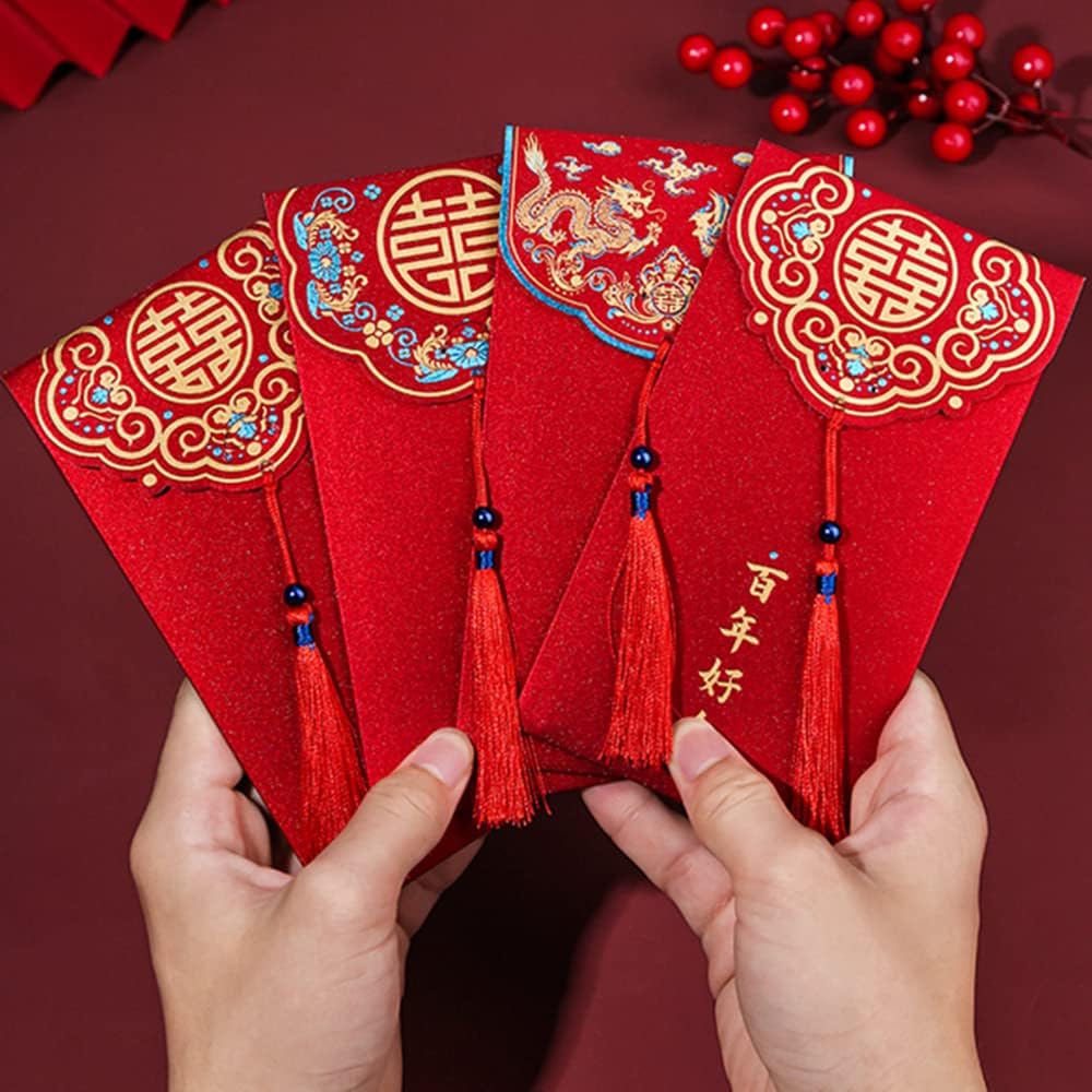 المواد: المغلفات الصينية الحمراء مصنوعة من ورق لامع عالي الجودة، وهو سميك للغاية وليس من السهل أن ينحني أو يتشوه.
