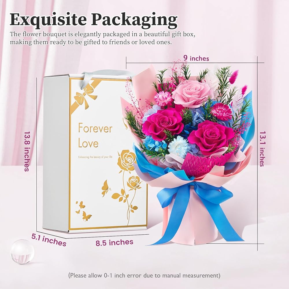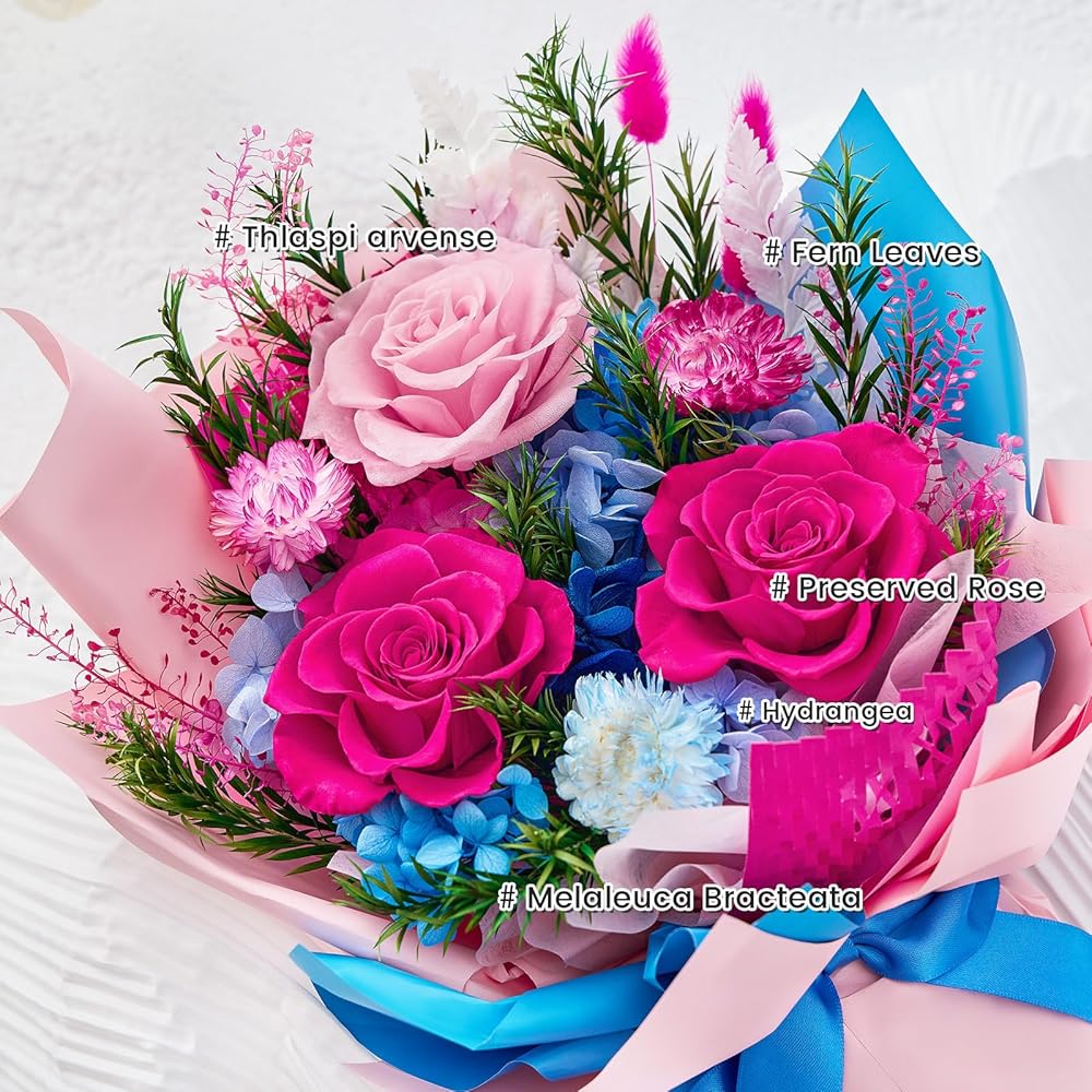 100 ٪ الزهور الحقيقية: جميع الزهور في باقة لدينا المحفوظة هي زهور حقيقية. تتم معالجة الأزهار من خلال عملية الزهور المحفوظة ، ويمكن أن تظل جميلة في شكلها الأصلي لأكثر من عام