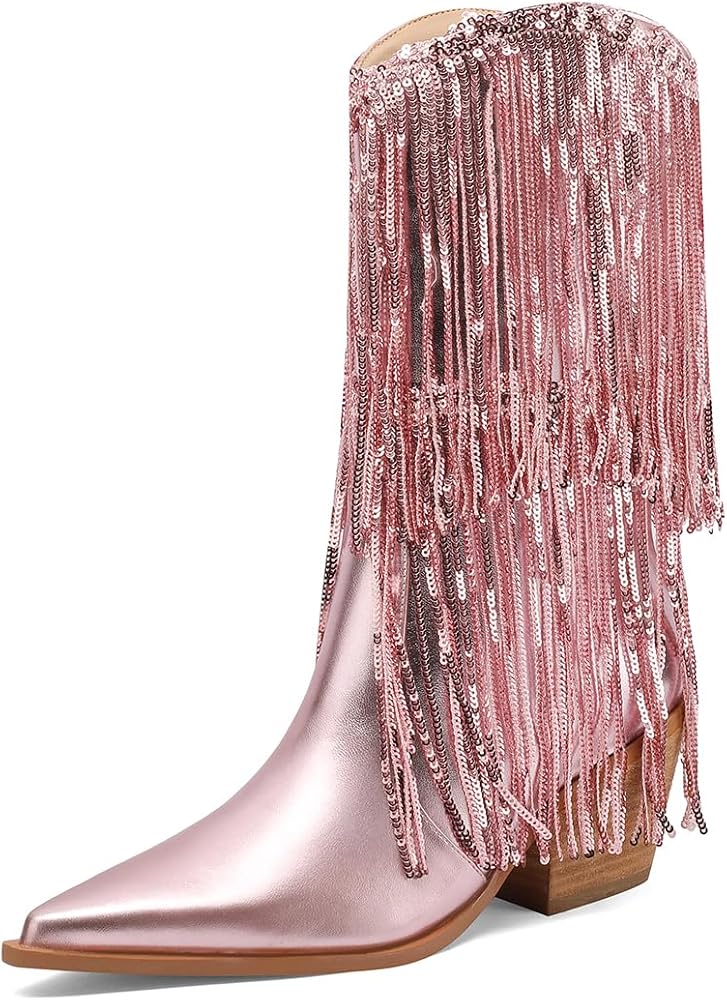 • [مواد عالية الجودة] أحذية رعاة رعاة البقر المألوفة هذه للنساء مصنوعة من جلد PU مرصع بأحجار الراين المتلألئة