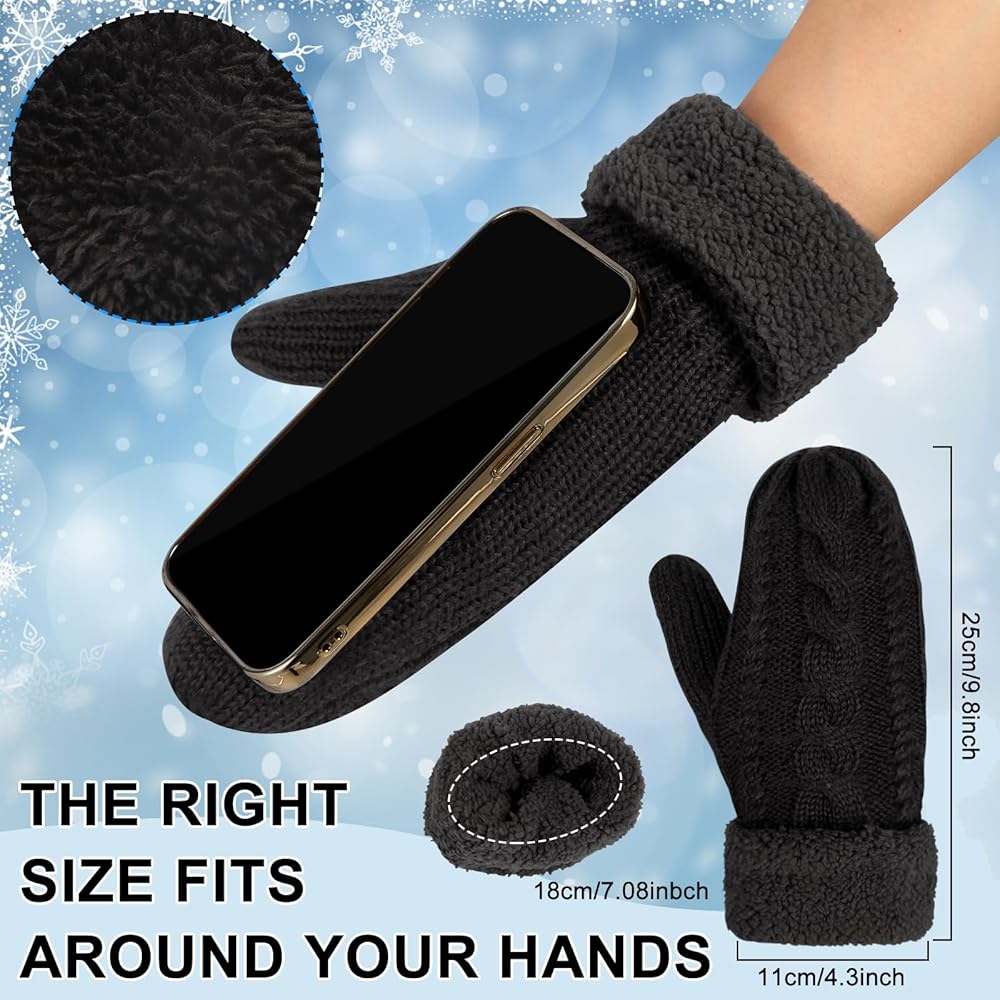 Comfortable Material: The outside twist knit design, the classic lining is soft on the skin, breathable and absorbs sweat. Mittens have super soft and warm plush cuffs. You'll never have to worry about the winter cold when you wear these feminine mittens outdoors. Hand washing or on-site cleaning is recommended. Please try not to machine wash or scrub.