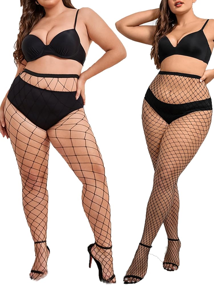 النساء 4 أزواج مثير بالإضافة إلى الحجم الجوارب شبكة السمك جوارب جوارب جوارب طويلة الخصر