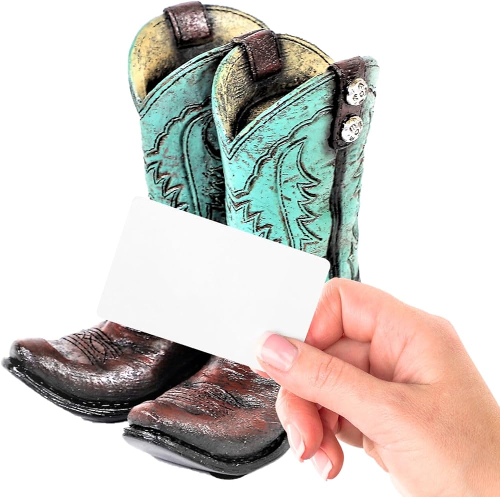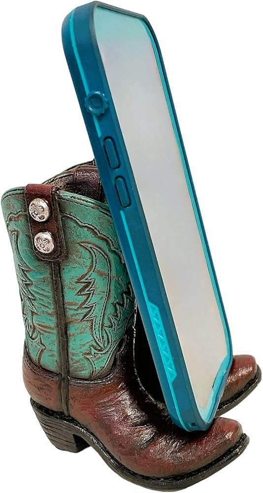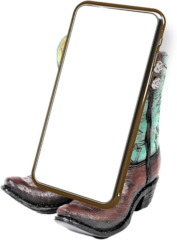 أضف لمسة من السحر الغربي الريفي إلى مكتبك أو مكان عملك مع حامل الهاتف المحمول هذا المصمم كزوج من أحذية رعاة البقر. لا يحمل هاتفك بزاوية رؤية مثالية فحسب، بل يمكن استخدام هذا الحامل أيضًا لحمل بطاقات العمل أو البريد أو الأجهزة الإلكترونية الأخرى.