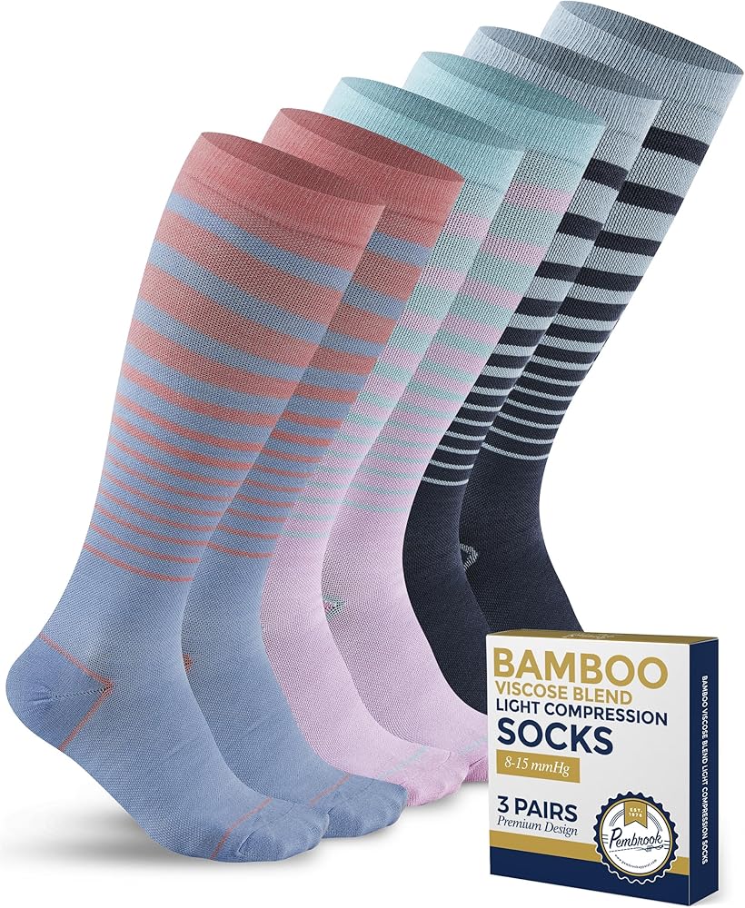 المادة الممتازة - Pembrook Mens و Womens Light Compression Socks تتميز Viscose المستمدة من الخيزران ، مما يضمن نضارة دائمة. مع تنظيم الرطوبة وتنظيم درجة الحرارة ، يمكن لهذه الجوارب تحمل أي مناخ.