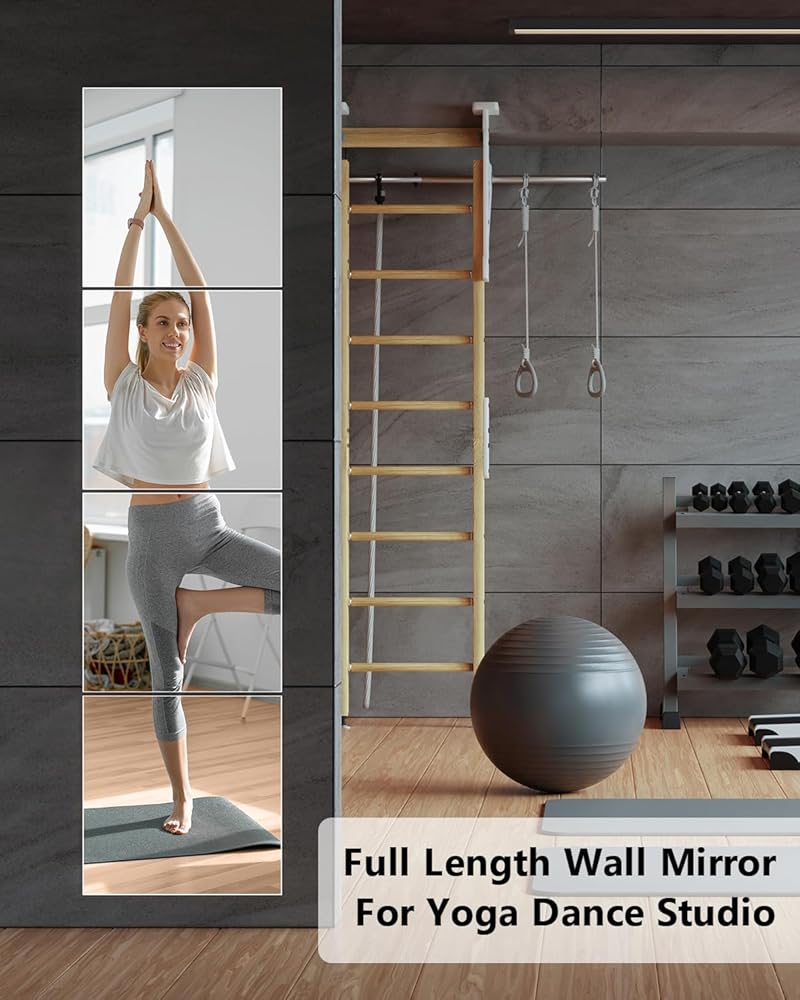 بلاط مرآة الجدار الكامل الطول ، 12 '× 12' 'x 4pcs ، مرآة الجسم الكاملة غير القابلة للكسر لساحات غرفة النوم مرآة مقاومة للتشويش مثبتة على جيم صالة الألعاب الرياضية المنزلية