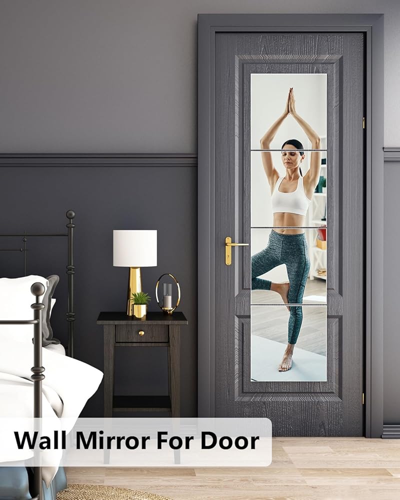 التطبيق الواسع: بلاط المرآة متعددة الاستخدامات ويمكن أن يعزز الحمامات والصالات الرياضية المنزلية وغرف النوم. قم بتثبيتها على الجدران أو الخزانات أو الأبواب أو مجموعات الشراء لإنشاء مرايا صالة رياضية كبيرة.
