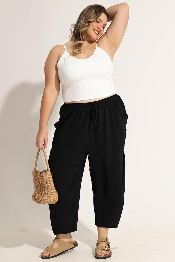 من السهل الاقتران: يمكن إقران السراويل الصيفية للنساء بالإضافة إلى الحجم بسهولة مع أي قمة ، وسترات ، وتستر وارتداء القدم ، ومناسبة للارتداء اليومي في المنزل ، والملابس الشارع ، والعمل ، والشاطئ والعطلة. مثالي لإنشاء نظرات متعددة الاستخدامات لأي موسم.
