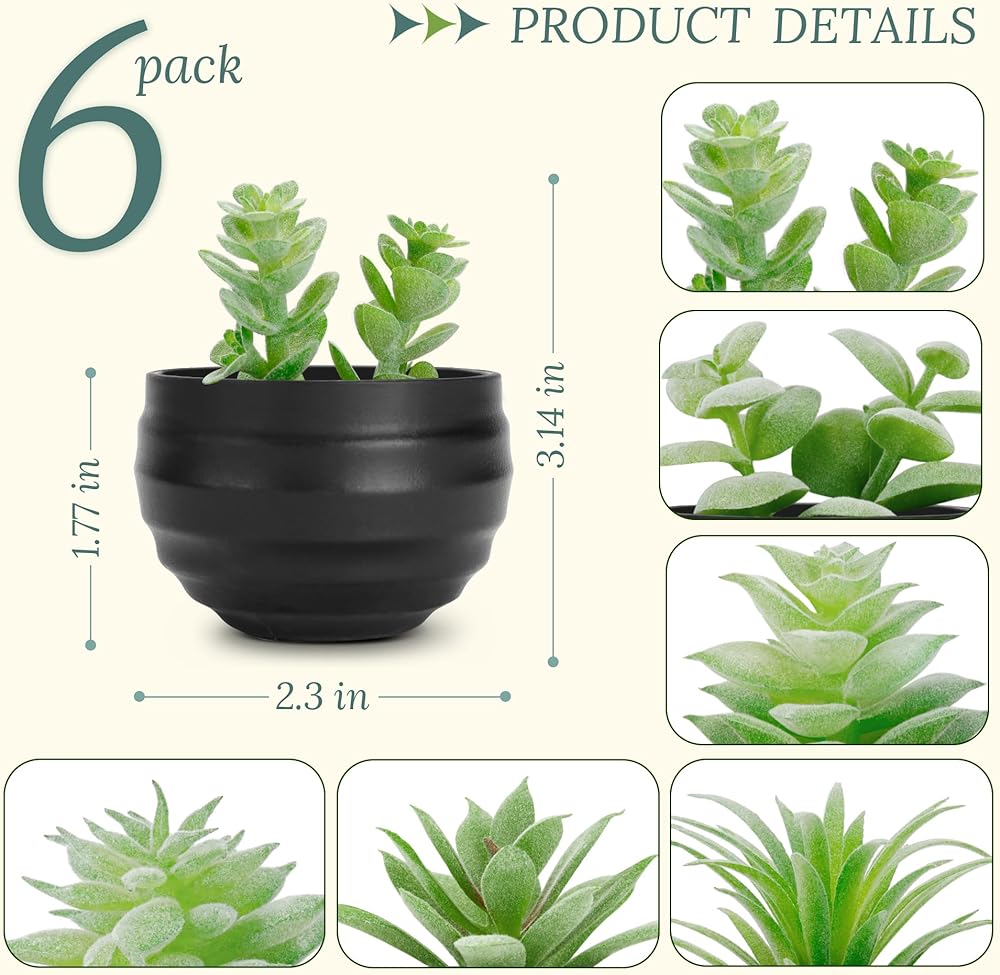 قيمة الحزمة: تتضمن 6 نباتات اصطناعية صغيرة مختلفة. تأتي كل عصارة مزيفة بالفعل في وعاء بلاستيكي خاص بها لسهولة العرض