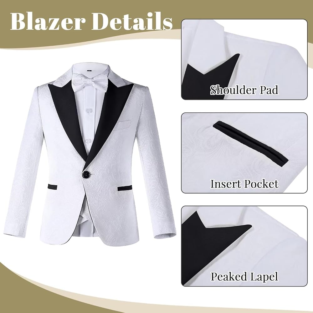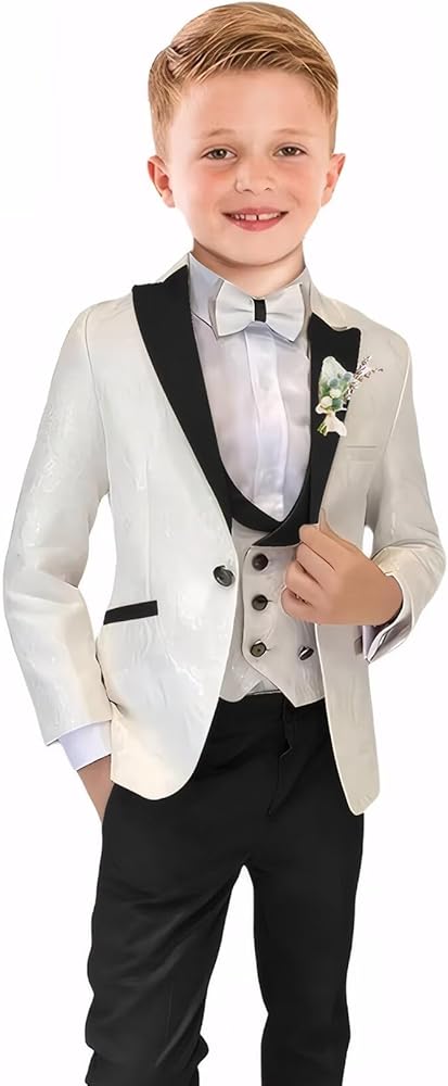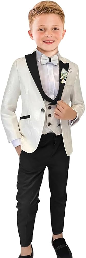 Boys Suit Floral Jacquard 3 Piece Suits for Boys Shawl Lapel Tuxedo Suit Formal Wedding Outfit