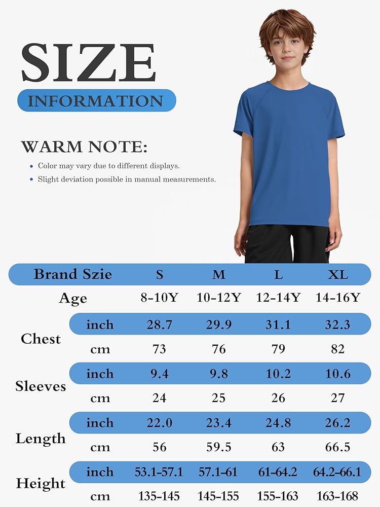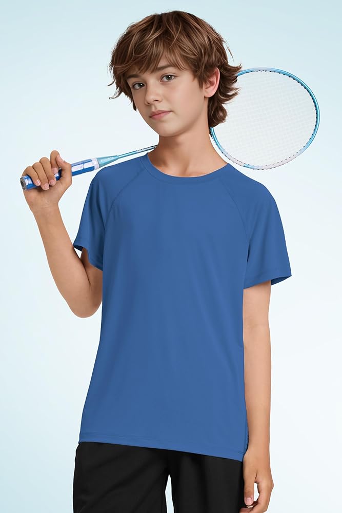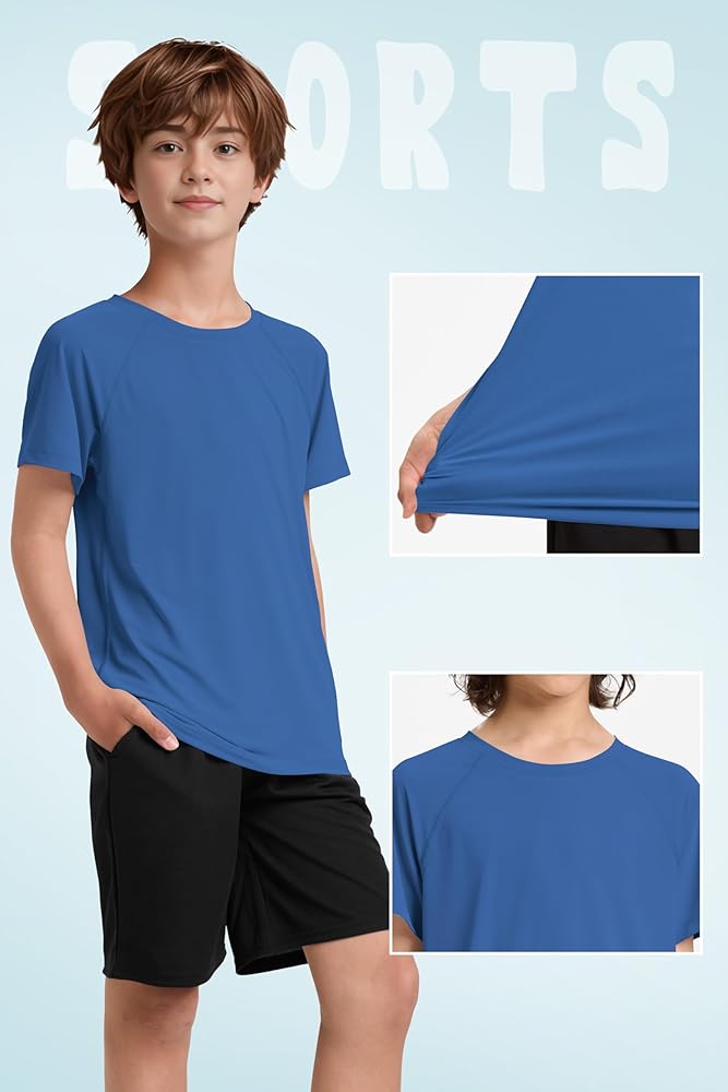النسيج الممتاز: مصنوع من 93 ٪ من البوليستر و 7 ٪ سبانديكس ؛ يوفر قميص شبابنا الجاف الجاف تجربة تجفيف سريع ومرهب العرق مع حماية من أشعة الشمس UPF 50+ ؛ امتدادها الطفيف يعزز الراحة ويقلل من القيود أثناء الأنشطة الرياضية