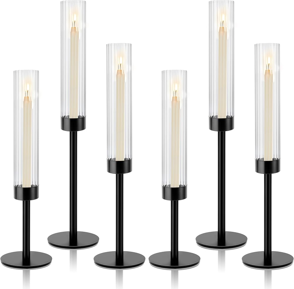 زجاج إعصار مقاوم للرياح: كل حامل شمعة مزخرف يأتي مع أنبوب زجاجي سميك لحماية شعلة الشموع وتقليل قطرات الشمع ، مما يجعل حامل الشمعة الزجاجي مثاليًا للاستخدام الداخلي والخارجي