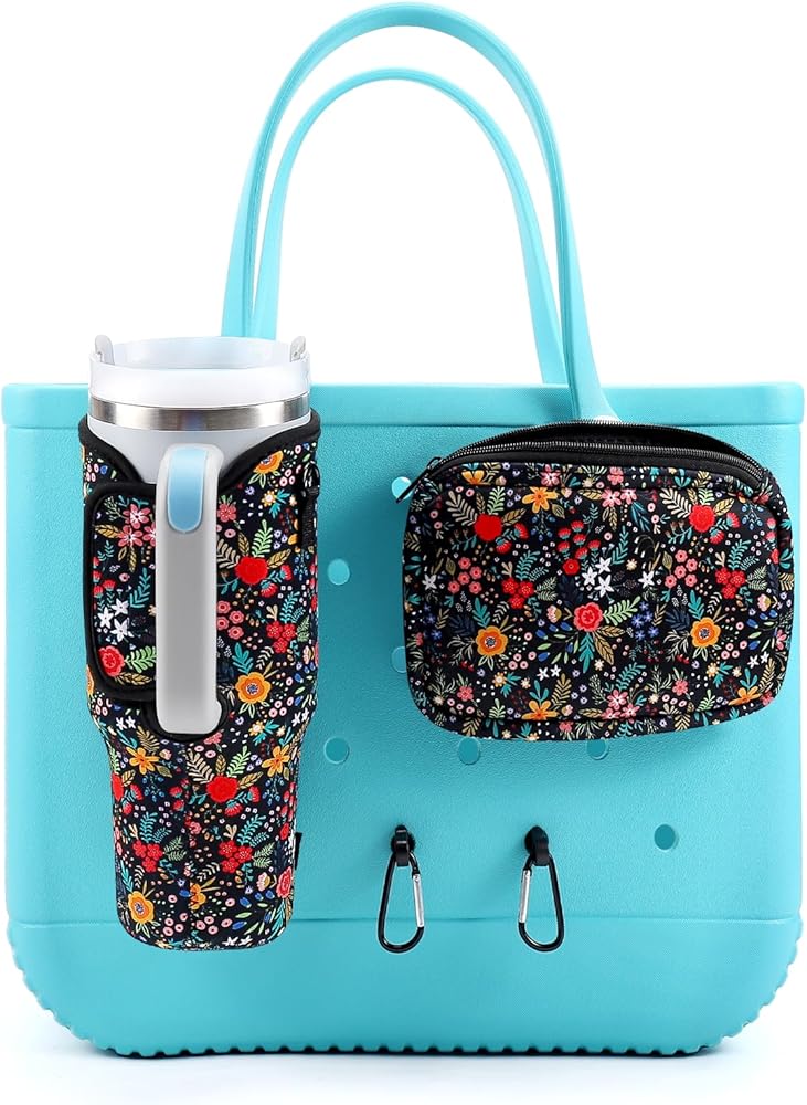 Ultimate Bogg Bag Organizer: تم تصميم حامل المنظم لدينا لتنظيم ممتلكاتك وفصلها تمامًا ، والحفاظ على مفاتيحك ونظاراتك الشمسية وسماعات الرأس ومستحضرات التجميل والمحفظة والهاتف الخلوي يمكن الوصول إليها بسهولة. تم تصميم حامل الكأس لدينا مثل كأس ستانلي ، وحديث بسيط وبعض الكؤوس الأخرى.