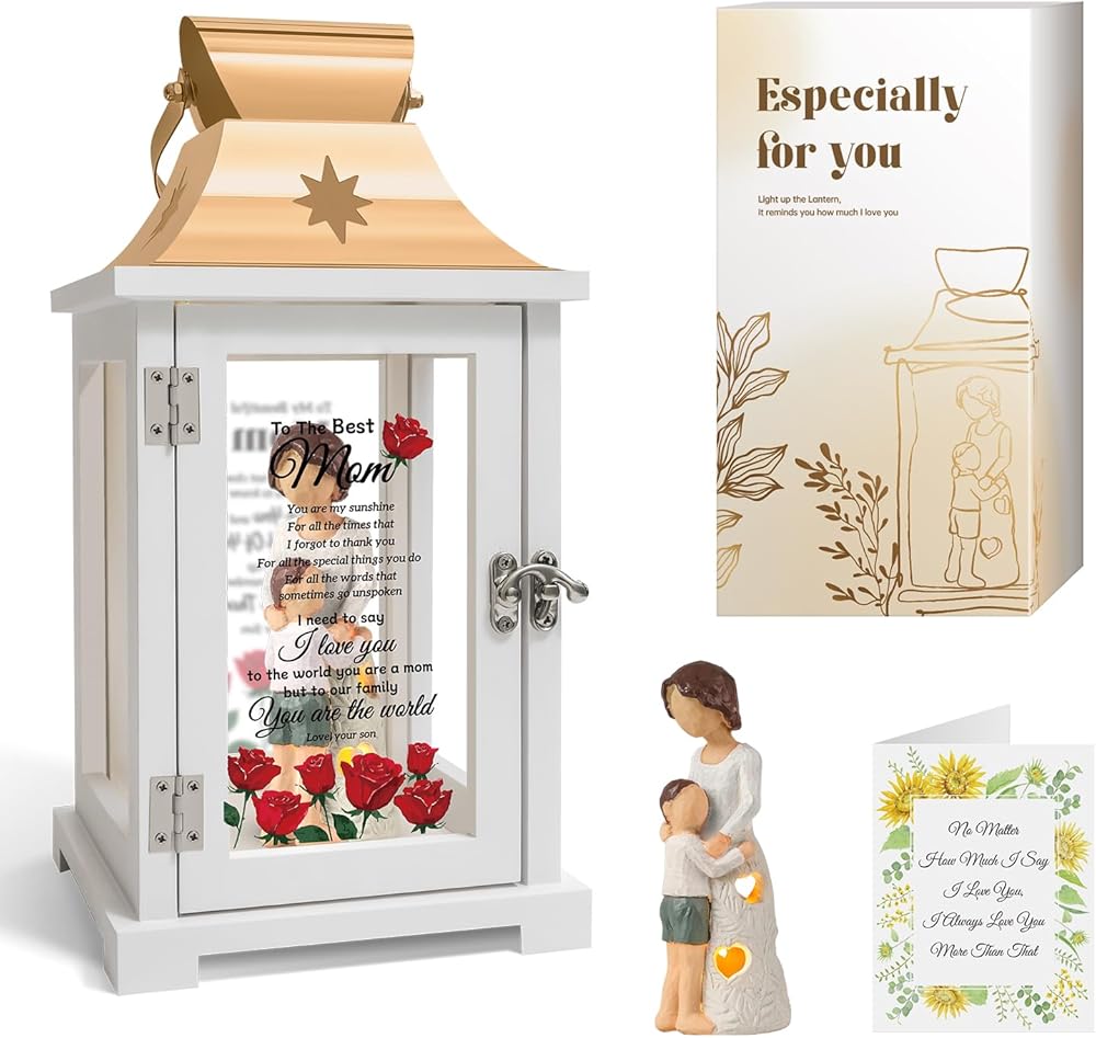 هدايا عيد الأم ذات مغزى من الابن: يلتقط فانوس الأم والابن لحظة حميمة بين الأم وابنها ، ويرمز إلى رابطة لا يمكن كسرها وحبها غير المشروط. إنه بمثابة هدية ذات مغزى للأمهات والأولاد وأي شخص يعتز بالاتصالات العائلية. طريقة مثالية للتعبير عن حبك ورعايتك ، يذكر هذا الفانوس أمي أنك ستكون دائمًا ولدها الصغير.