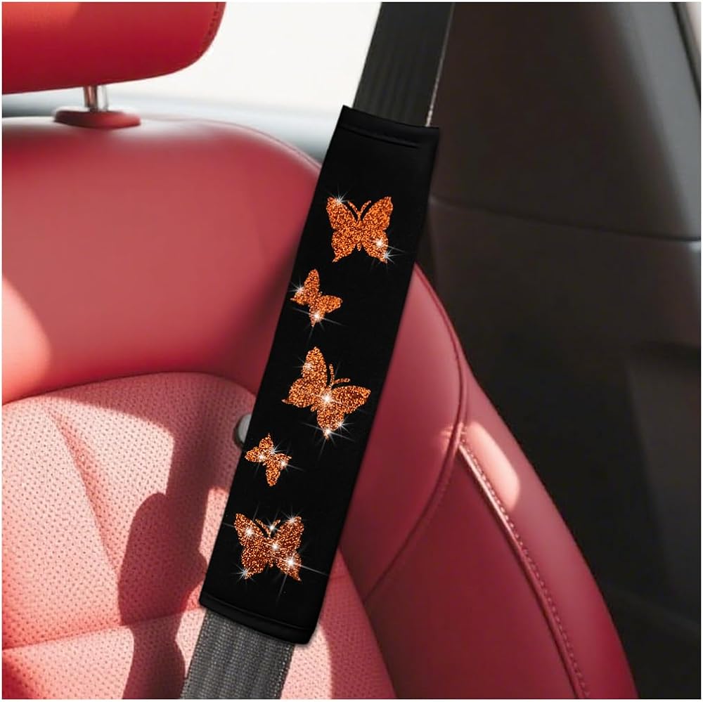 -Great Appearance: The seatbelt cover is designed with the butterfly pattern, giving a luxurious, upscale feeling, can enhance the overall sense of quality of the interior decoration of the car.