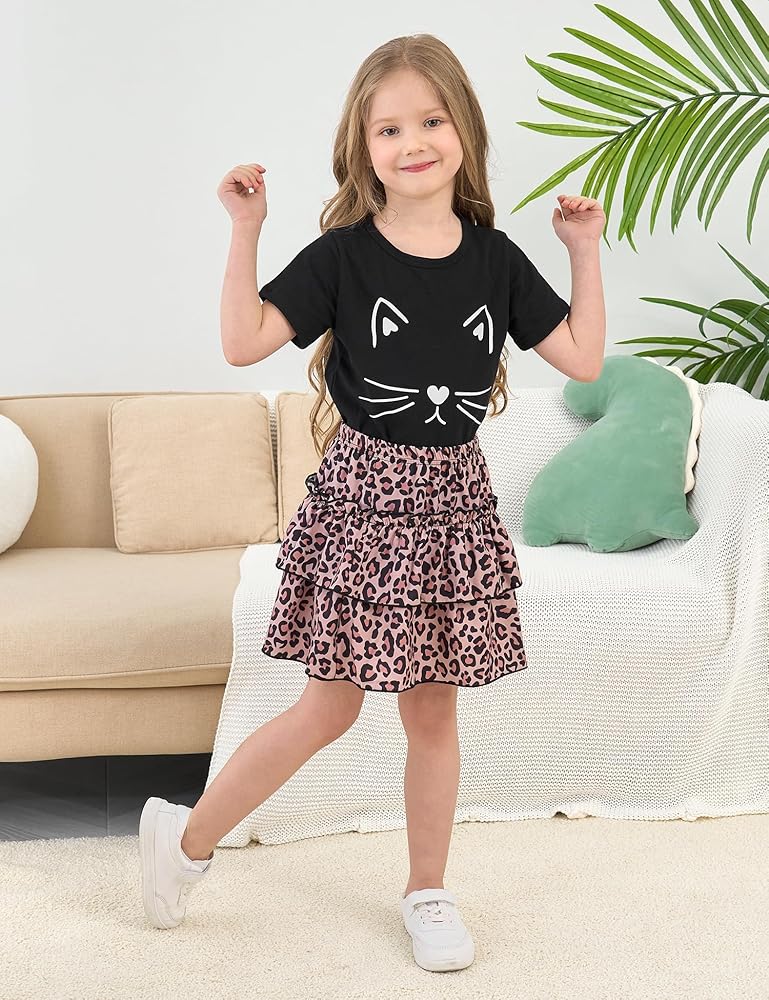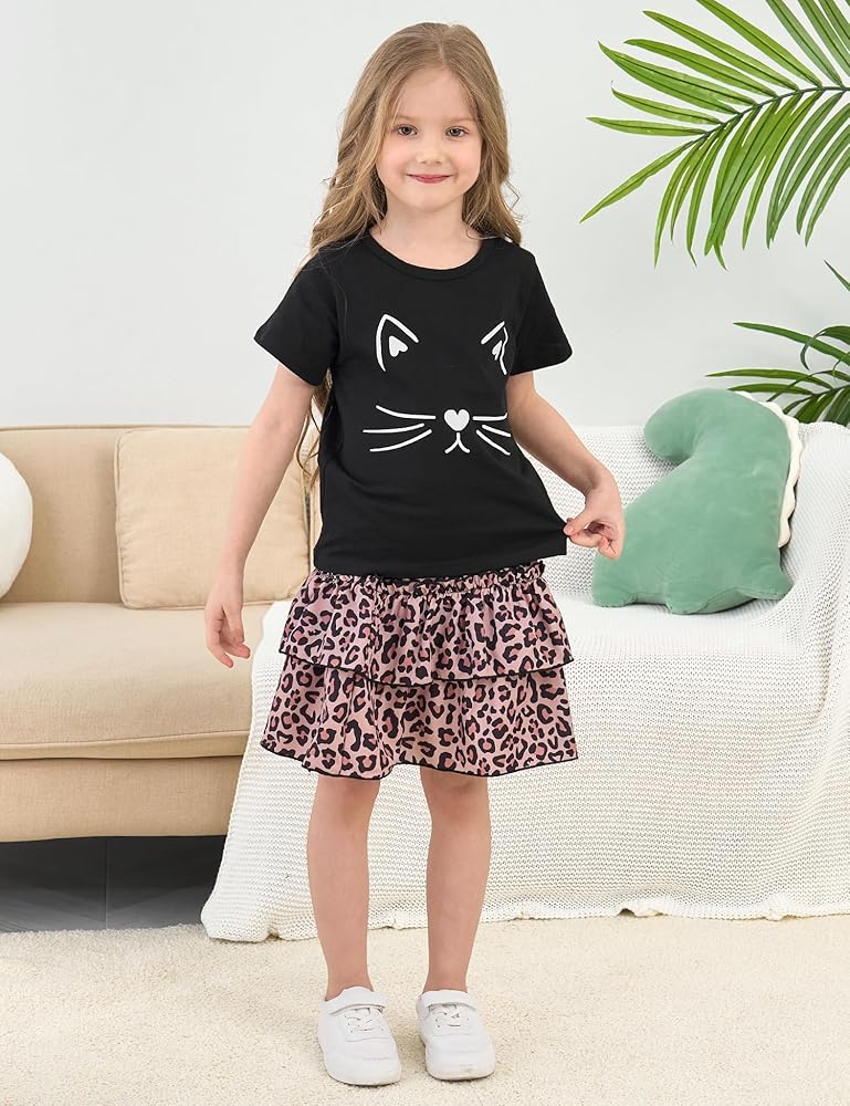 • تصميم لطيف: تتميز مجموعة تنورة الفتيات الرائعة بقطط أو قلب أو قميص الشكل مقترن بتنورة طباعة الفهد. ويشمل أيضًا ملابس ذات طابع آيس كريم ، وأزياء وحيد القرن ، وفرق وردية ، وملابس عيد الحب للفتيات ، وأزياء أرنب عيد الفصح ؛ قمة لطيفة مع مجموعة SHIRRED TIERDER SKIRT 2 قطعة.