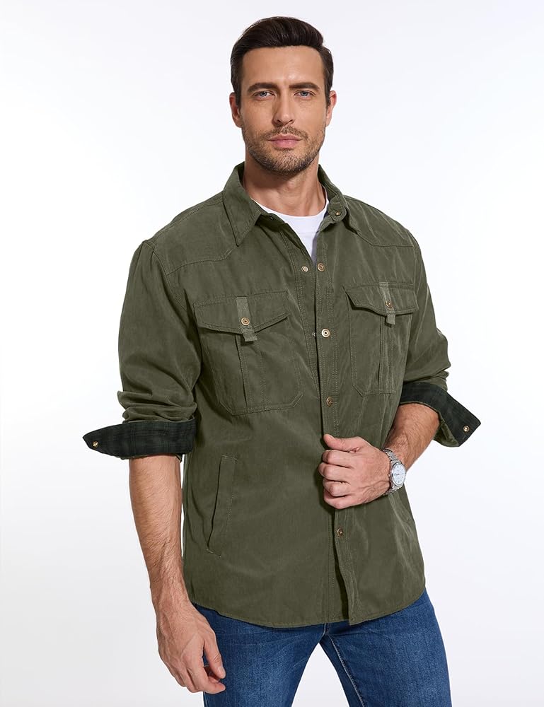 【الحجم الأمريكي-ألوان Muleit】 4 ألوان حول قميص هذا الرجال المغطى بأكمام طويلة من هذا الرجال مقعد من غرب رعاة البقر المبطن من الفانيلا للاختيار من بينها-يمكنك طلب لونك وحجمك المفضل بقدر ما تريد!