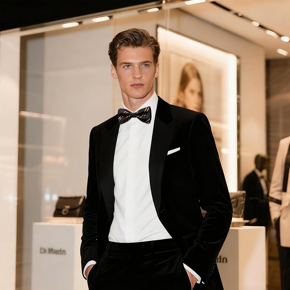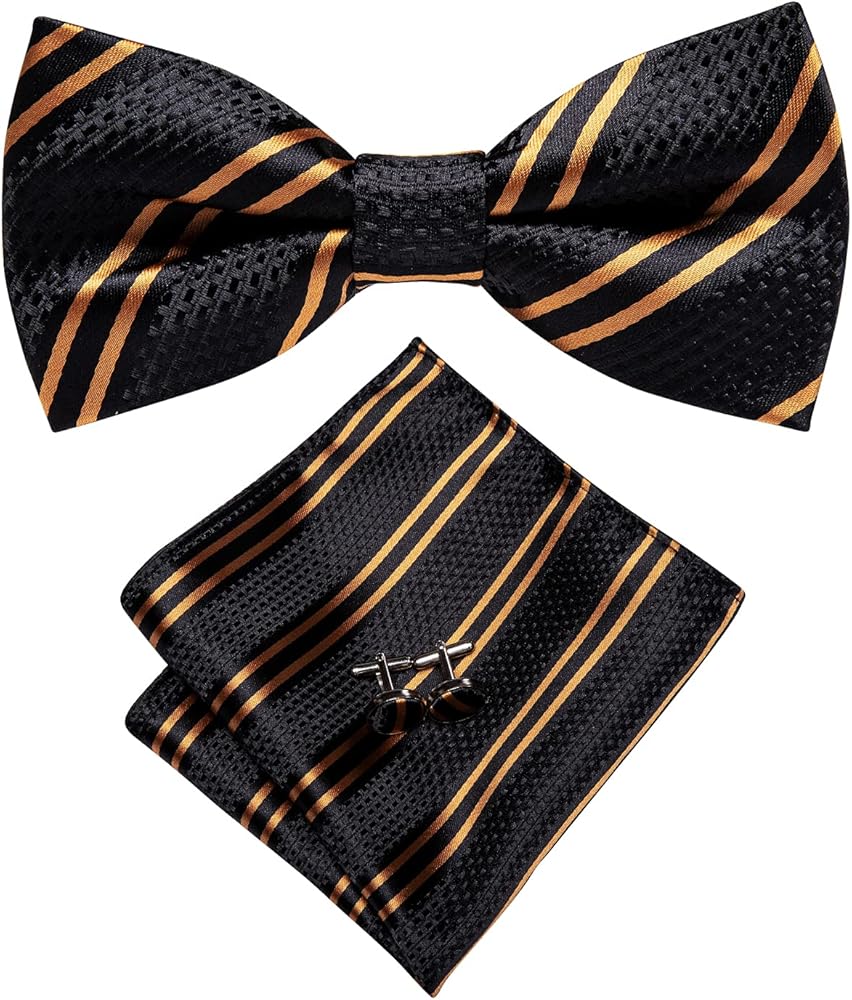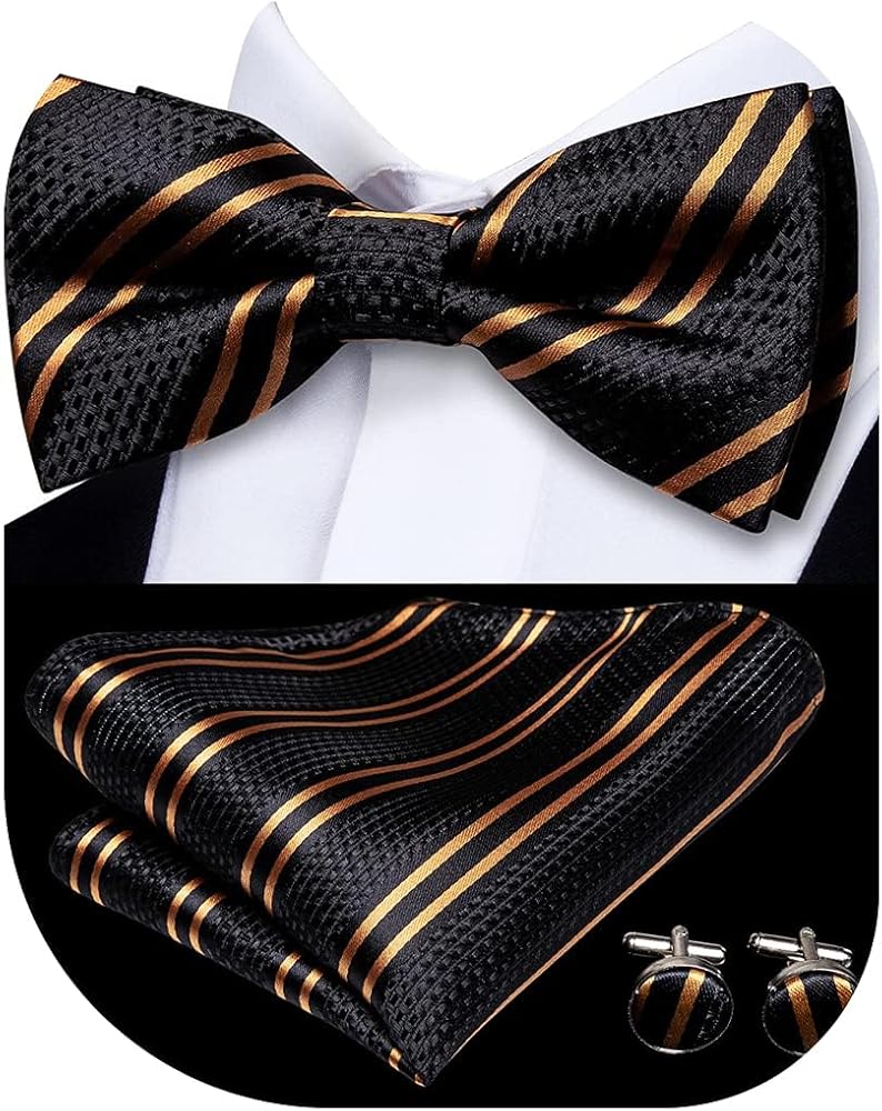 مجموعة ملحقات متعددة الاستخدامات: تتضمن هذه المجموعة bowtie الأنيقة المسبقة مسبقًا ومربع جيب مطابق ، مثالي لإضافة لمسة من التطور إلى أي ملابس رسمية أو شبه رسمية.