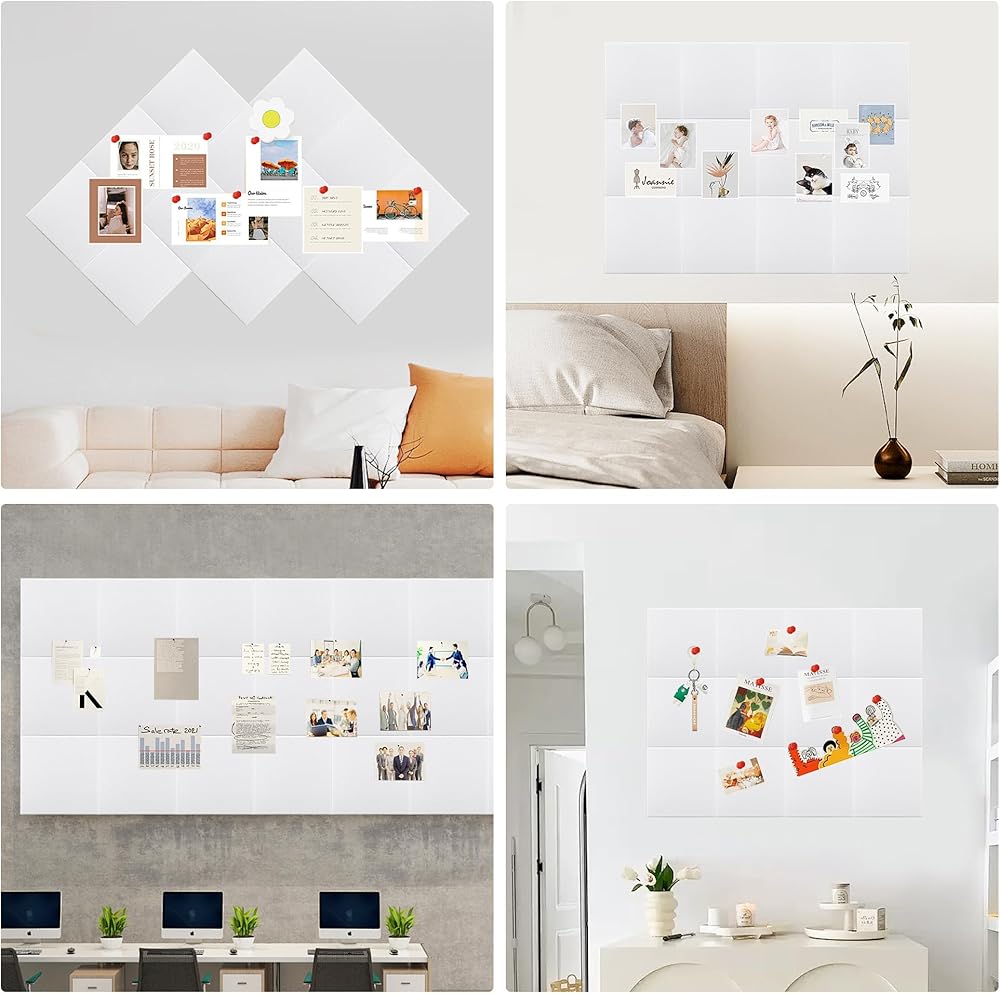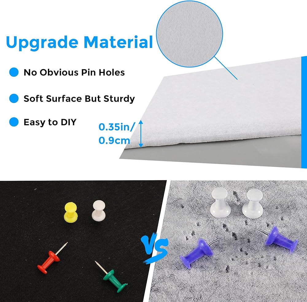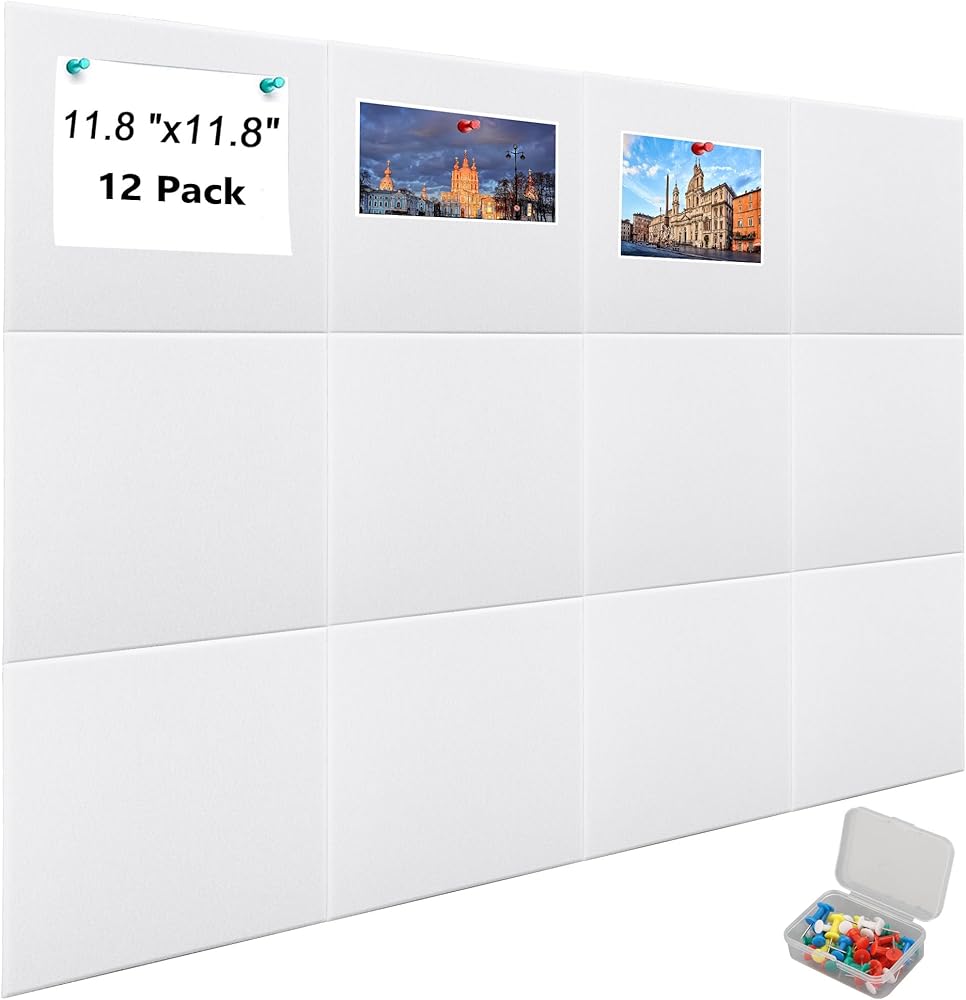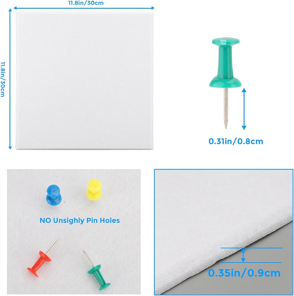 الحجم: تحتوي الحزمة على 12 قطعة من 11.81x11.81x0.35in لوحات شعر عالية الكثافة سميكة. الحل البسيط والمريح للوحة النشرة للمنزل والمكاتب والفصول الدراسية والأماكن التجارية.