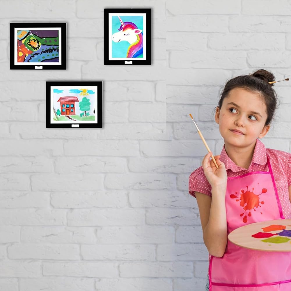 Cerilion Kids Artwork Frames – Perfect for Displaying Your Child's Art Give your child's artwork the spotlight it deserves with Cerilion Kids Artwork Frames. Designed to enhance your home's décor while keeping your child's masterpieces organized, these frames provide a unique and versatile solution for showcasing your little one's creativity. Whether it's for your home, classroom, or playroom, these frames add joy and elegance to any space. Key Features: 2-in-1 Wall Mounted & Self-Standing Frame: A dual-purpose frame that can be wall-mounted or table-mounted, ideal for any space. Easily display and switch out your child's artwork whenever inspiration strikes. Excellent Capacity: Designed to hold 50–80 pieces of your child's artwork, depending on the thickness of the paper. Perfect for storing and showcasing a large collection of drawings, paintings, and more. One-of-a-Kind Design: Features a 180º open-front design, allowing easy access to your child's artwork. Elastic bands make swapping pieces simple, while the clear glass provides an unobstructed view of each creation. Superior Quality: Made from high-quality engineered wood and environmentally safe materials for durability and a crystal-clear display. The clean, white frame complements any décor with a stylish and elegant touch. Easy to Use: Magnetic closure makes artwork swaps quick and hassle-free. Includes two sets of four hooks on the back, allowing you to hang it vertically or horizontally to suit your space. Universal Use: Not only for kids' artwork but also perfect for displaying 2D or 3D items such as diplomas, scrapbooks, pictures, and other memorabilia. Available in Two Colors: Choose between timeless Black or White frames to match your décor style. Size Options: 8.5x11 inches: Perfect for smaller artworks. 10.5x12 inches: Ideal for larger pieces. Whether you're organizing your child's art collection or adding a creative touch to your home, Cerilion Kids Artwork Frames are the perfect solution. Display their creativity with pride and keep their memories alive for years to come!
