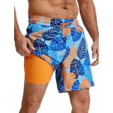 SWIM TRUNKS WITH COMPRESSION LINER ZIPPER POCKET FOR MEN & 7” INSEAM MENS BATHING SUIT SWIM BOARD SHORTS SWIMWEAR