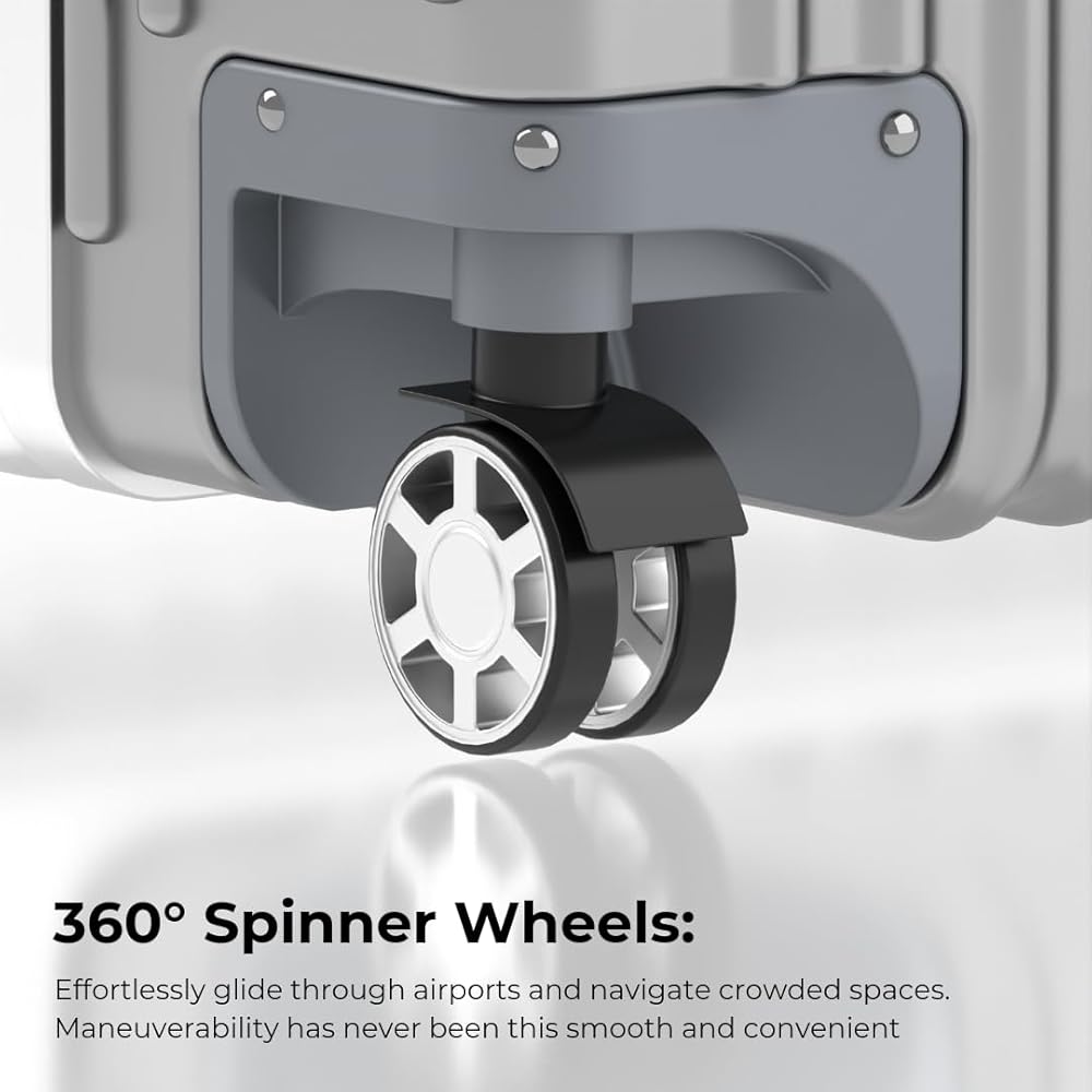 ☑ إمكانية المناورة دون عناء مع عجلات الدوار 360 درجة: انتقل عبر المطارات الصاخبة ومحطات التدريب دون عناء مع عجلات دوارة الأمتعة الأربع متعددة الاتجاهات. هذه العجلات توزع الوزن بالتساوي ، وضمان انزلاق ناعم وهادئ. يعزز تصميم العجلات المزدوجة المتانة ، ووعد بتجربة سفر سلسة.