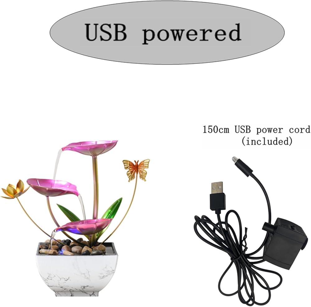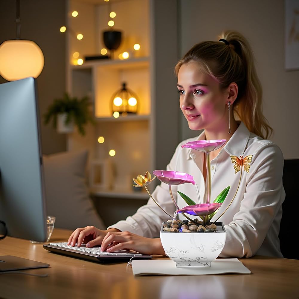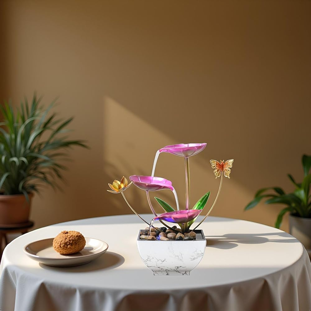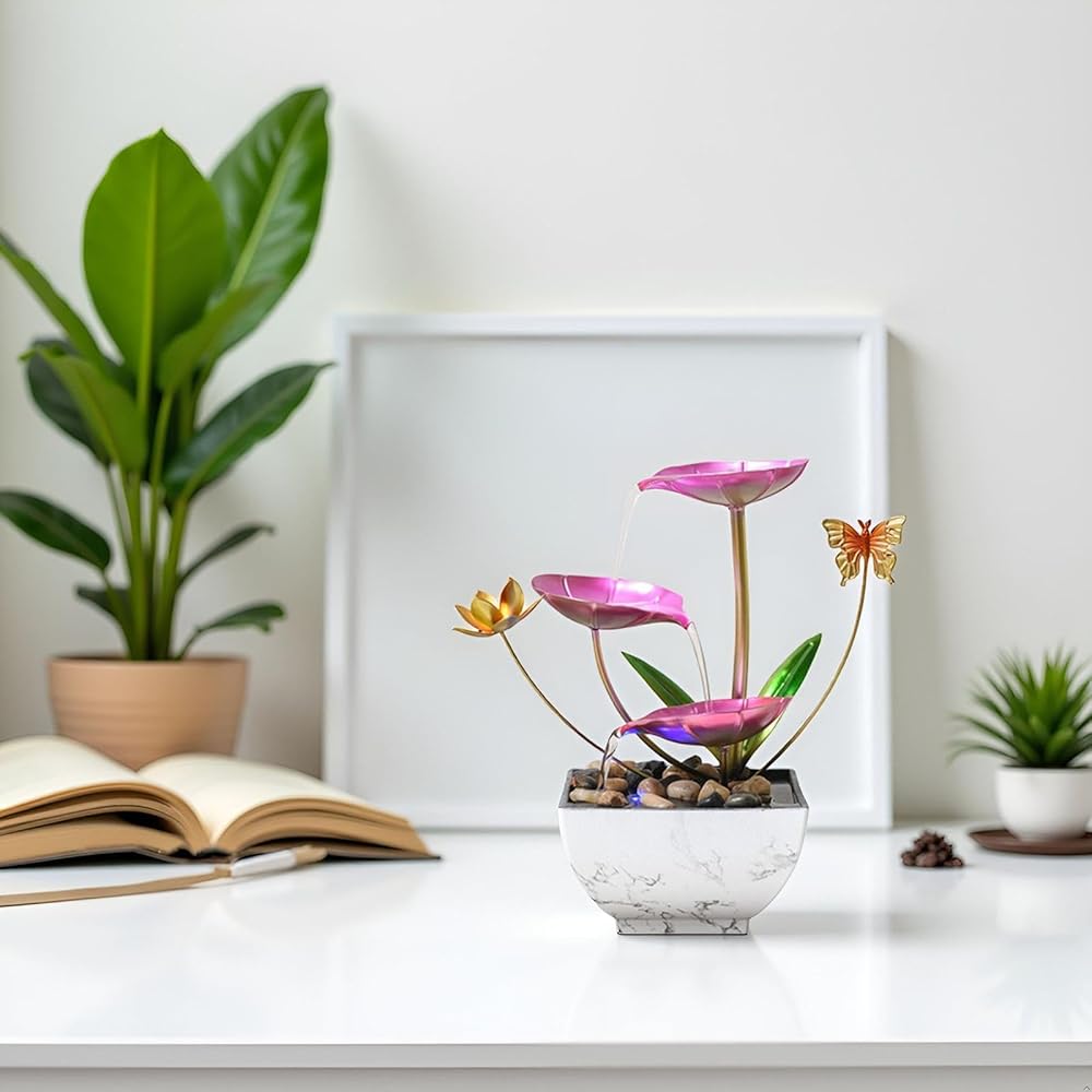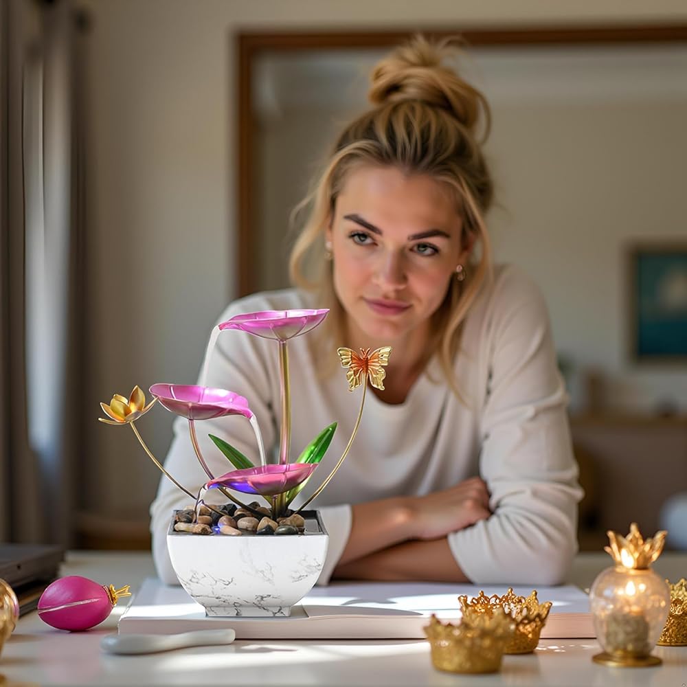 نافورة شلال سطح المكتب ، نافورة زخرفية لسطح المكتب الوردي ، اليوغا الداخلية والاسترخاء للمكاتب أو غرف المعيشة أو غرف النوم