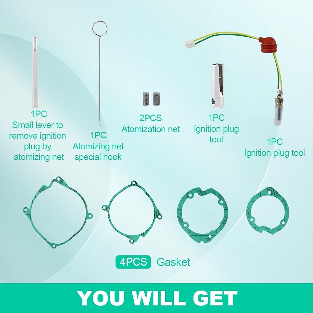 Glow Plug Repair Kit, DieselHeater with Parking DieselHeater Glow Ignition Plug Kit, Heater Glow Ignition Plug Kit with Filter and Removal Fitting Tool Ceramic Air Heater Glow Plug Repair Kit for Parking Heaters