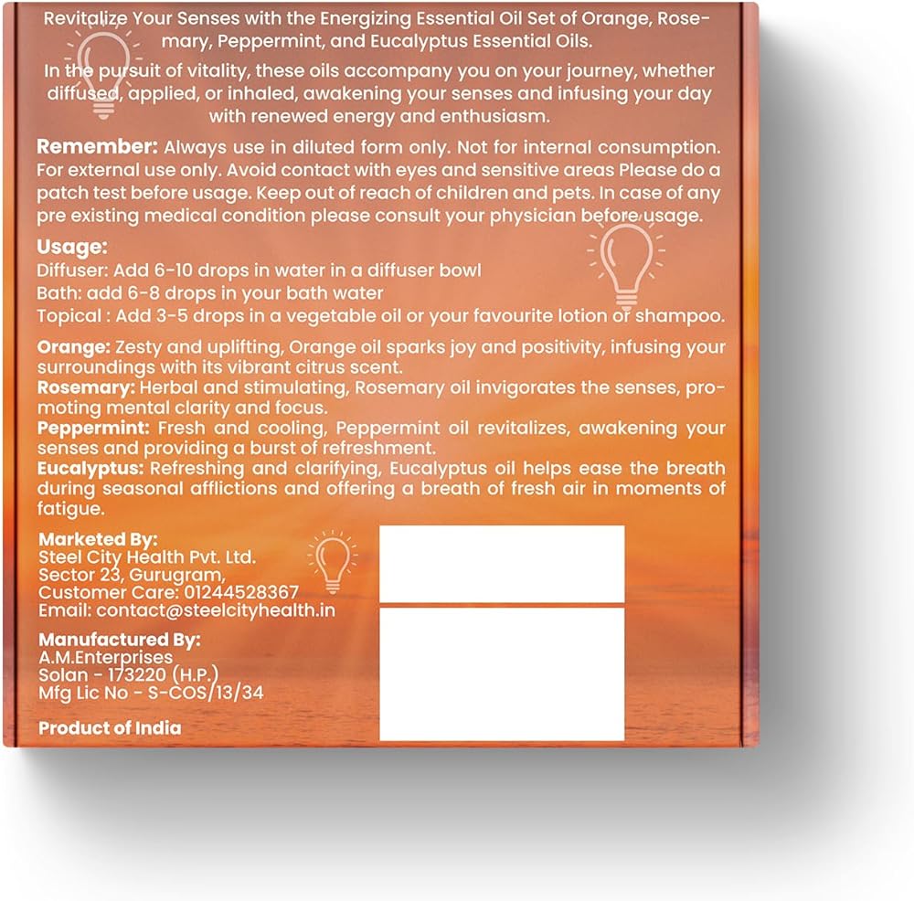 • تنشيط الروائح الناشئة عن النضارة والطاقة - تجلب زيوت الأوكالبتوس ونعناع النعناع رائحة منعشة ورفقة تنشط حواسك ، مما يساعدك على الحفاظ على تنشيطه أثناء الأنشطة الخارجية. مثالي لأيام الصيف أو في أي وقت تريد فيه بيئة رائعة منعشة.
