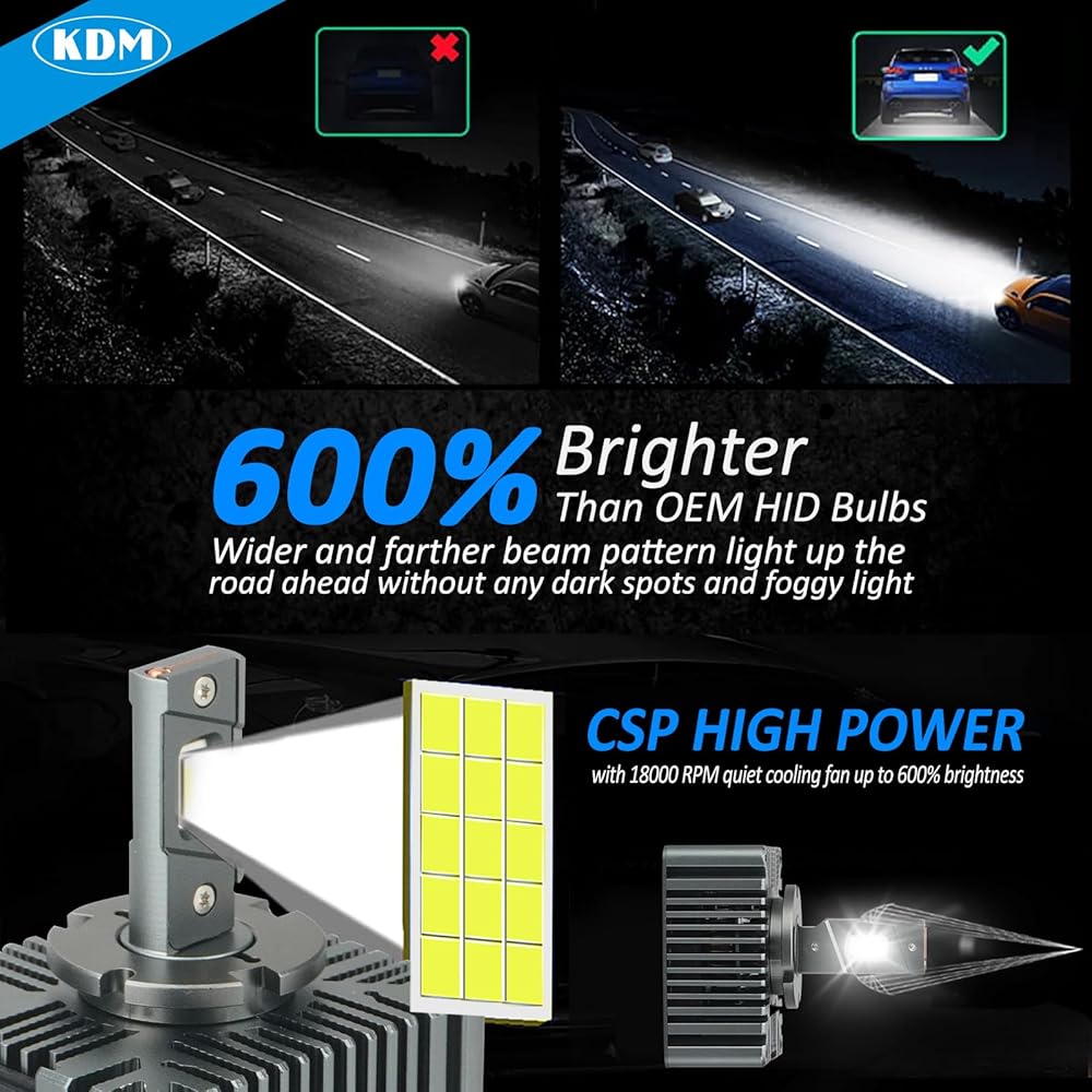 【600 ٪ من السطوع الفائق العالي】 KDM D5S لمبة LED تتبنى 2024 التكنولوجيا المطورة حديثا ، Uese 90W رقائق CSP عالية الطاقة لكل زوج.