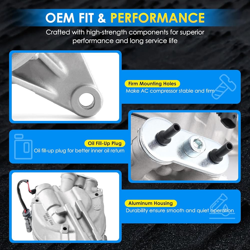 OEM-Quality Replacement: All critical mounting surfaces, dimensions, and contact points are carefully measured to guarantee a perfect fit, making installation easier. Air compressor are 100% tested to OEM standards and lubricated with high-quality grease to ensure durability and smooth operation.