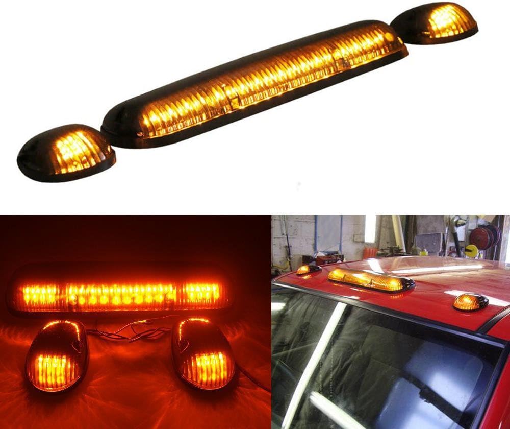 GSRECY 3PCS AMBER LED LED CAB MARKER RARTH RUND TOP LIGHT LAMPS SENSBLY مع تسخير الأسلاك مع تشيفي سيلفرادو GMC SIERRA 1500 1500HD 2500 2500HD 3500 شاحنة 2002-2007 (عدسة الدخان)
