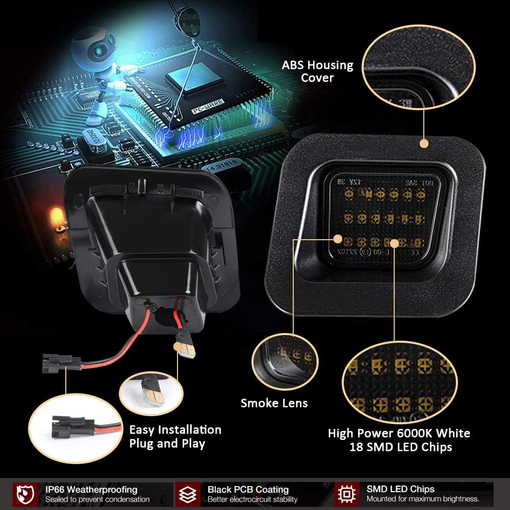 • 【أداء عالي الجودة】: مصابيح لوحة الترخيص هذه أكثر إشراقًا من مصابيح الأسهم. بطاقة عالية الطاقة 18 SMD رقائق LED ، مصنوعة من السكن البلاستيكي ABS وعدسة الدخان ، و 6000K الأضواء الساطعة البيضاء تزيد من الإضاءة و IP68 مقاومة للماء. تصميم وحدة التحكم Canbus LED ، لا رمز خطأ.