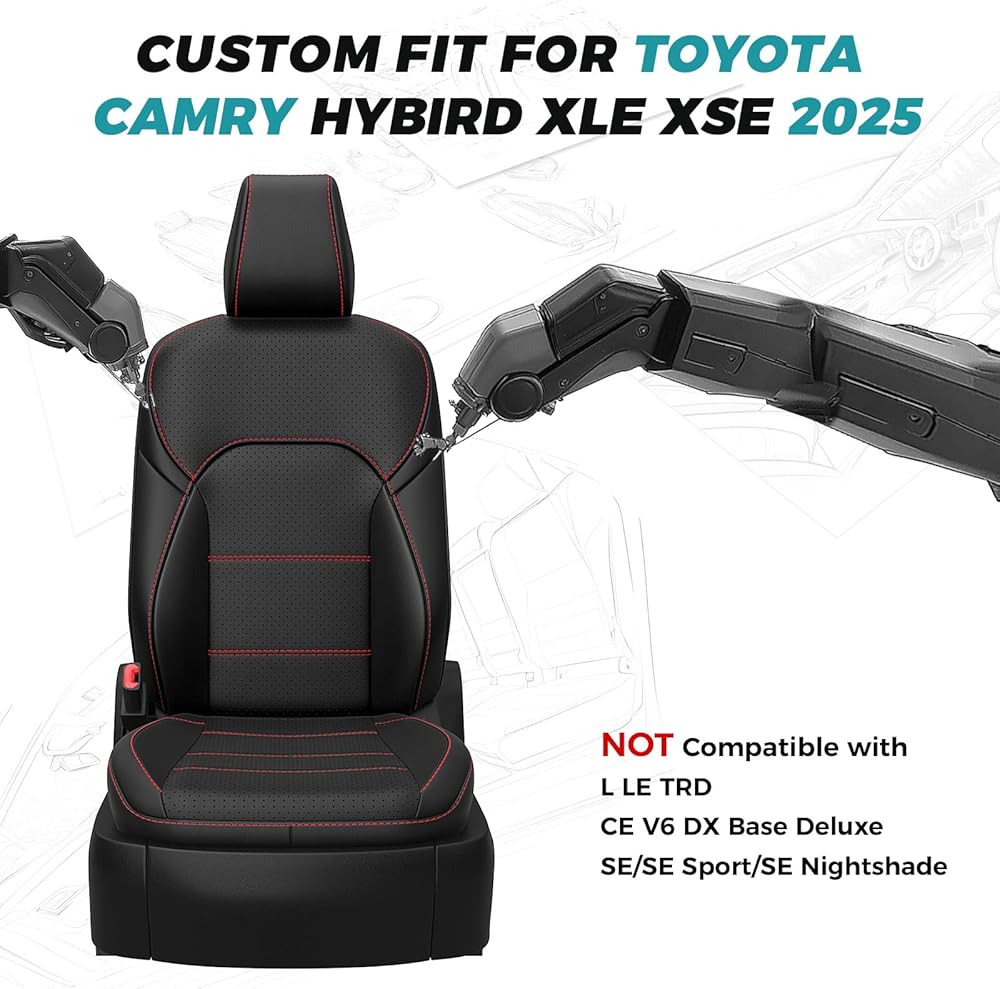【يغطي مقعد السيارة المخصص 1: 1】: تم قطعها بدقة ومخصصة لأغطية مقعد كامري لتناسب تشبه القفازات. تناسب حصريًا لتغطية مقعد Toyota Camry Le 2025.