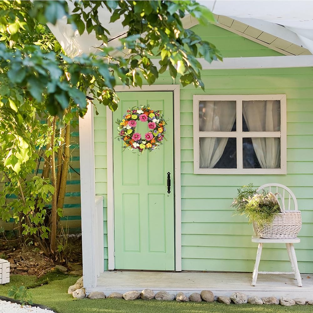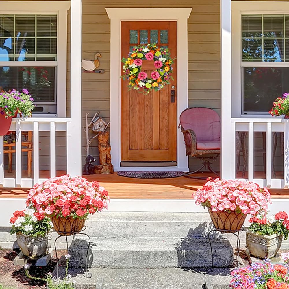 أكاليل الصيف الاصطناعية للباب الأمامي للباب الفاوانيا الزهور الزهرية ملونة مع الفاوانيا ، ديزي ، الخزامى زهرة الخشخ