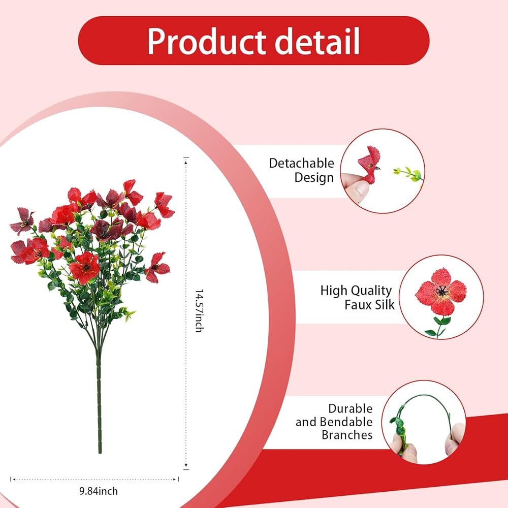 تصميم مستقر قابل للتعديل: يتم إرفاق كل رأس زهرة مجد Material Material Matery بشكل آمن ولا يسقط بسهولة. يقيس التصميم القابل للتعديل حوالي 9.45 "بعرض 13" ، مع ما مجموعه 12 حزمة لكل مجموعة ، مما يتيح لك تخصيص الترتيبات لتناسب أسلوبك بشكل مثالي.