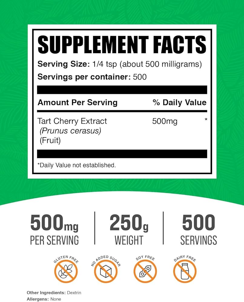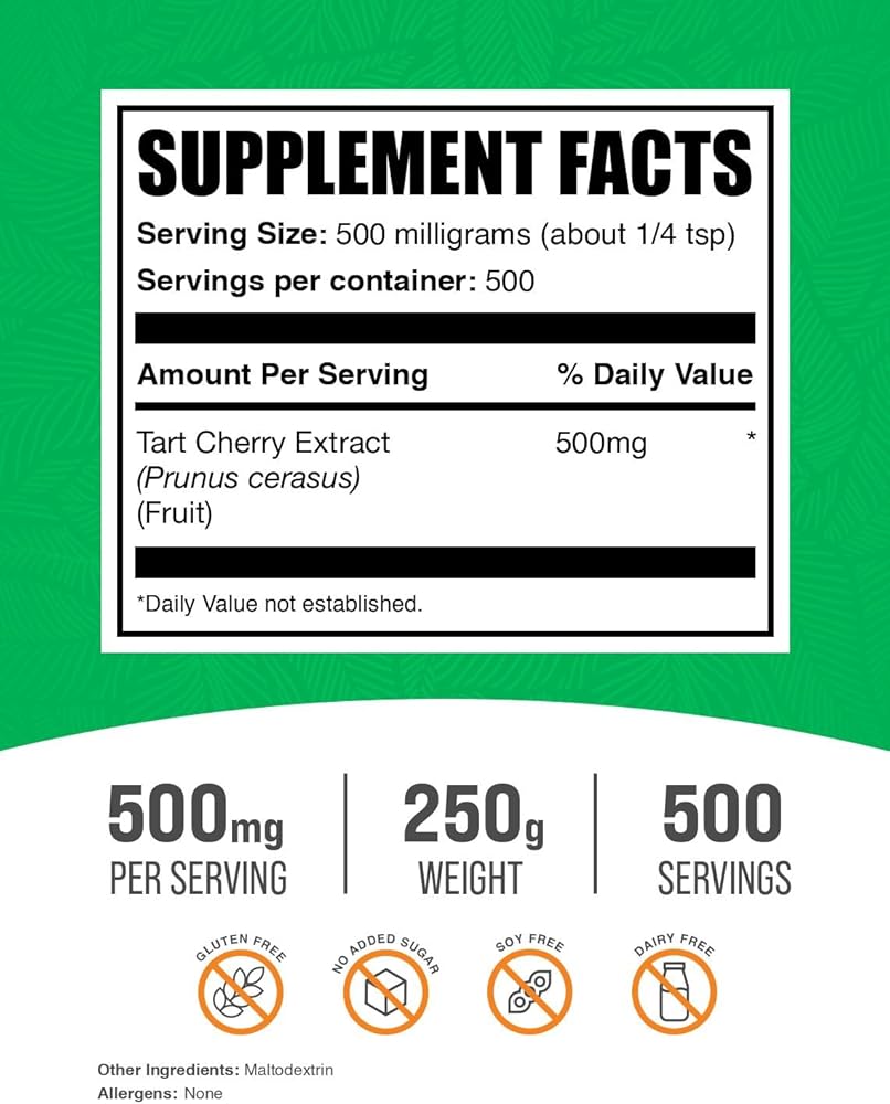 Intuitive Wellness Support: Feel supported in your wellness journey with our Tart Cherry Extract, in Tart Cherry powder, designed to complement your natural lifestyle. Suitable for daily use, our Tart Cherry supplements strive to fit effortlessly into your wellness routine, without any complicated regimens.