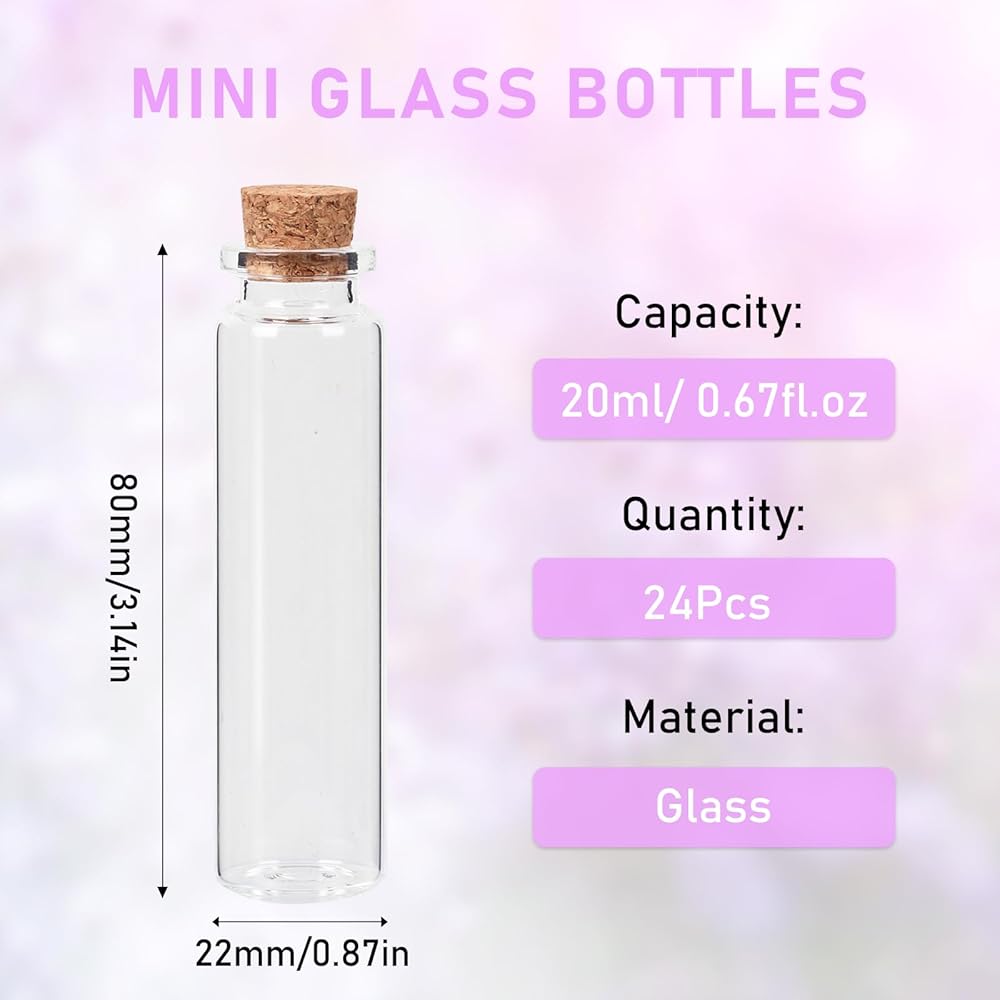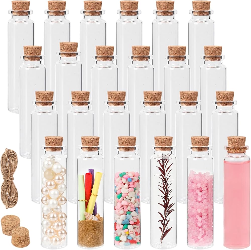 زجاجات زجاجية صغيرة سعة 20 مل مع فلين، 24 عبوة زجاجات صغيرة مع سدادات فلين وخيوط إضافية، قوارير صغيرة مع أغطية، وعاء تعويذة صغير، زجاجة جرعة صغيرة، رسالة في زجاجة لحفلة ذات طابع خاص، رمل