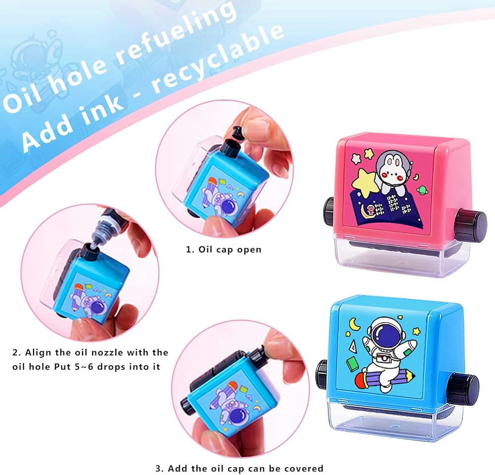 - 4. قابلة لإعادة الاستخدام صغيرة ورائعة، سهلة الحمل، أضف حبرًا لإعادة الاستخدام، تشمل المنتجات "ختم تعليمي قطعتين" يحتوي على زجاجتين من الحبر.