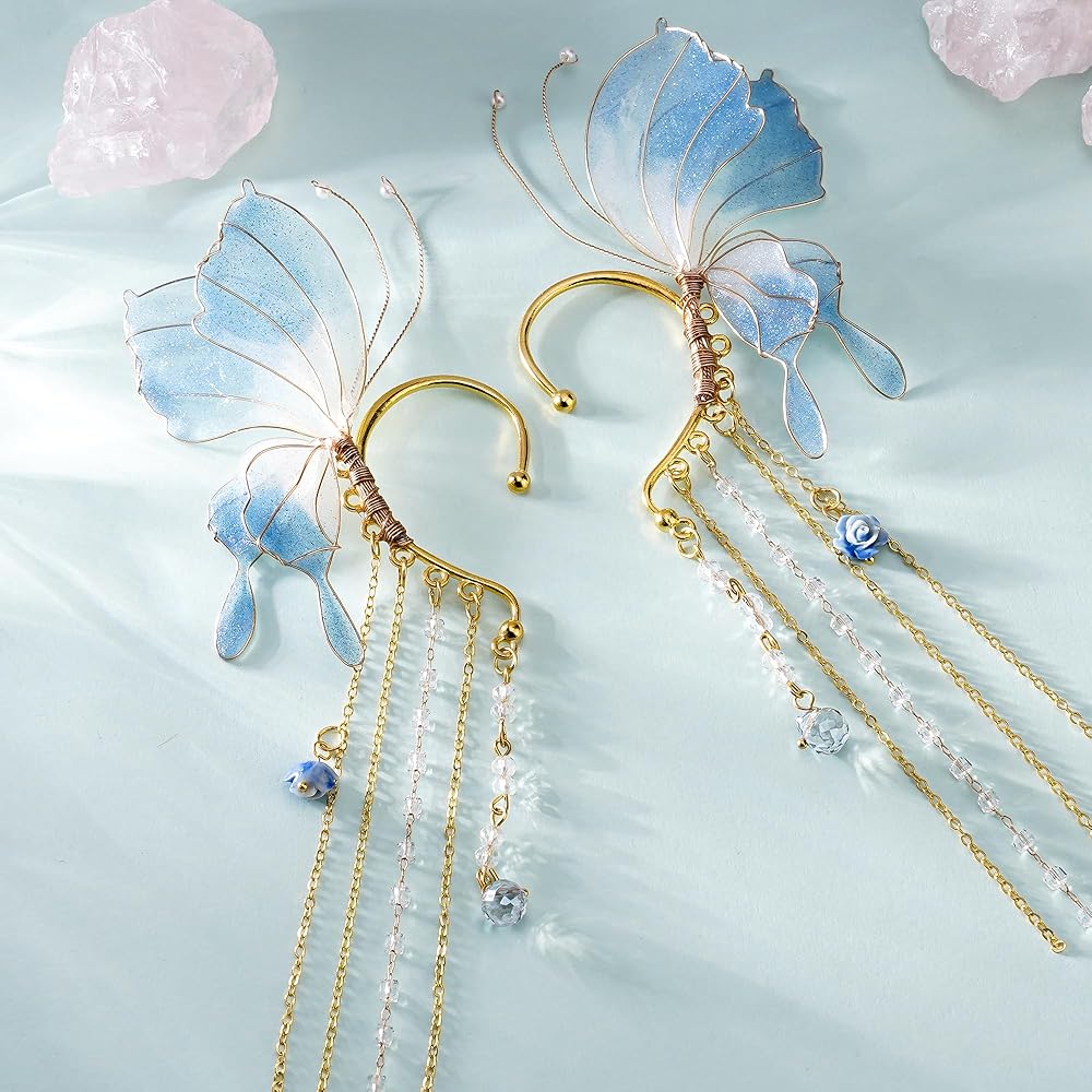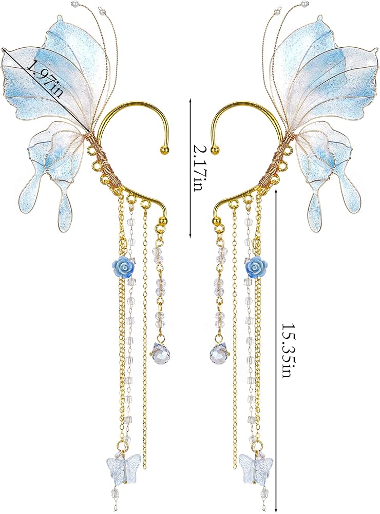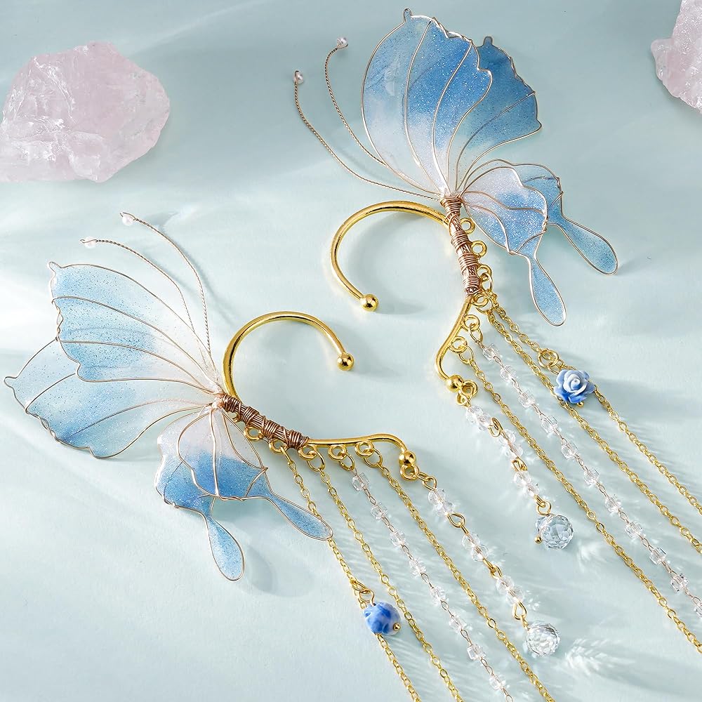 أصفاد الأذن الفراشة الأذن: أجنحة رائعة جديدة الأصفاد الأذن ، الأجنحة الخيالية الجميلة ، شكل حلق ، بألوان حالم وأجنحة الفراشة. تبدو أقراطنا الخيالية جيدة جدًا وتتيح لك أن تصبح جنية أو قزمًا