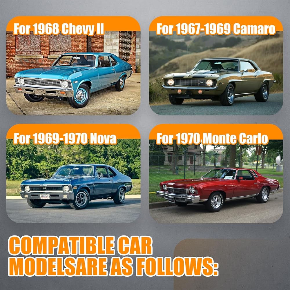 • 【Compatible with】Specifically designed for 1968 Chevrolet Chevy II, 1967-1969 Camaro, 1969-1970 Nova, and 1970 Monte Carlo, this kit ensures a precise and seamless fit for your classic vehicle