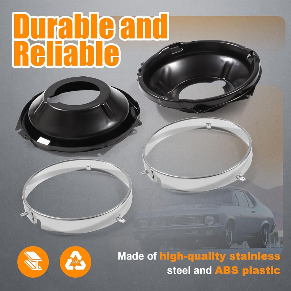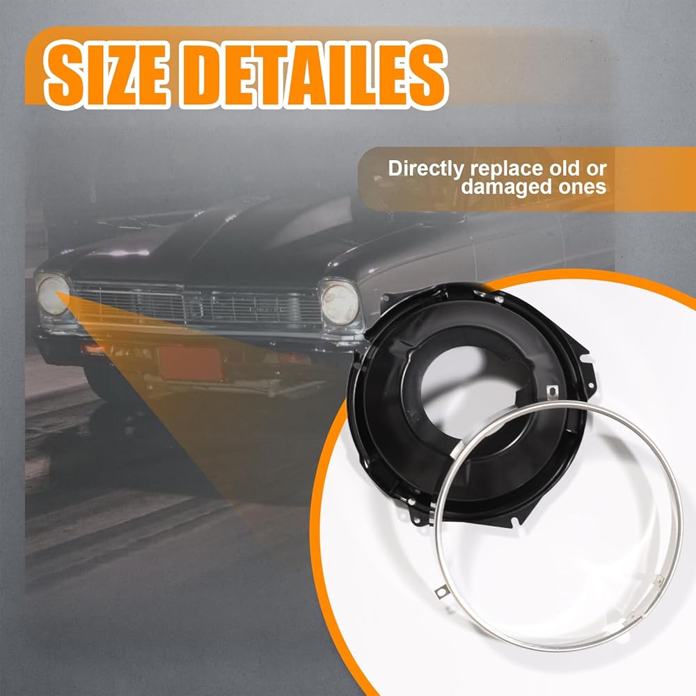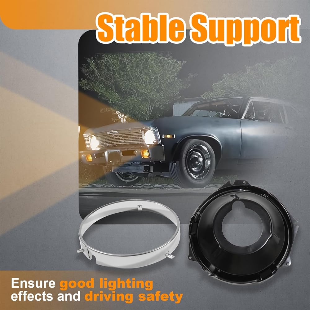 مصابيح الأمامية المحتفظ بها حلقة دلو ومقعدة لعام 1968 شيفروليه تشيفي الثاني ، 1967-1969 كامارو ، 1969-1970 نوفا ، 1970 مونت كارلو