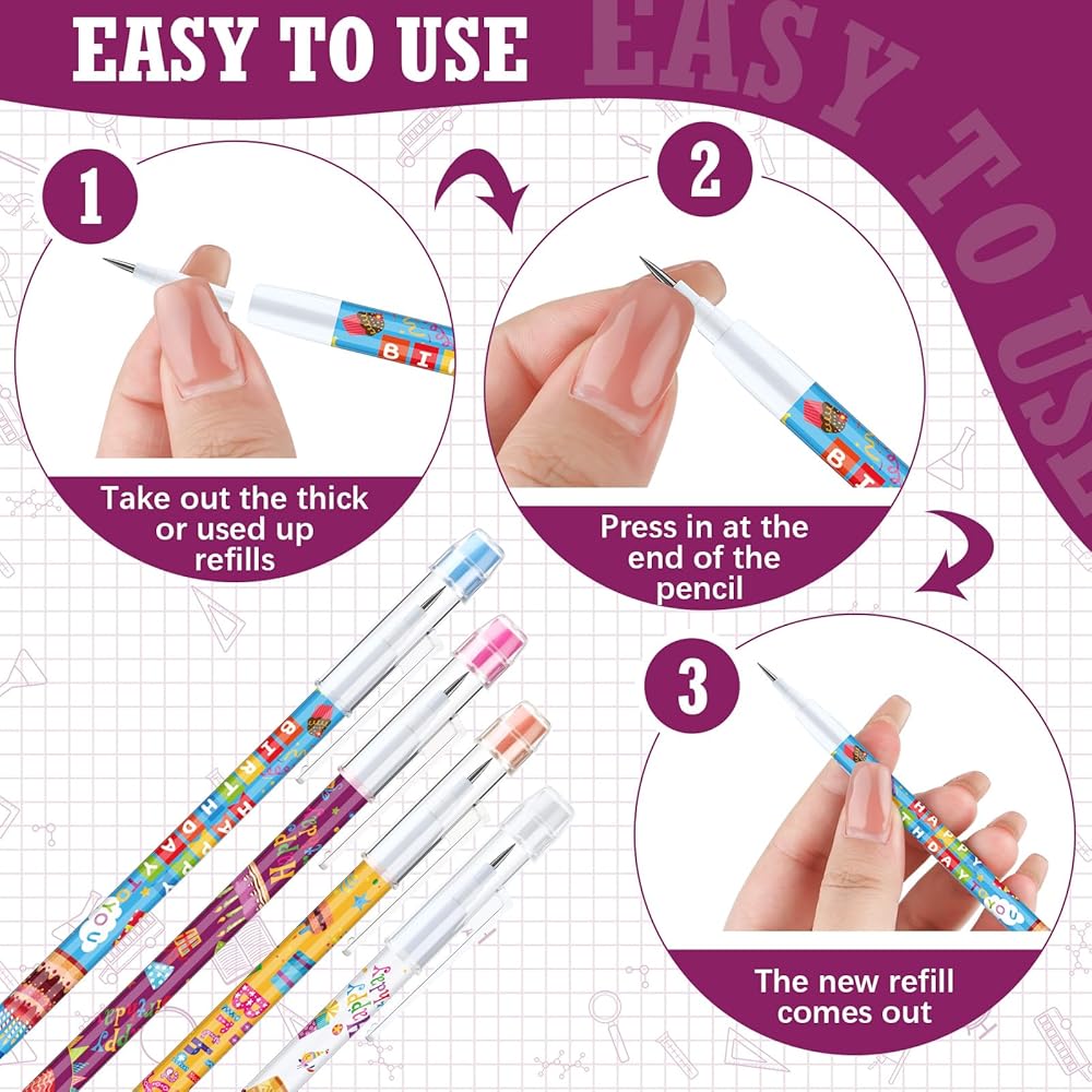 استبدال مرن: يمكن استبدال أقلام عيد الميلاد السعيدة الخاصة بنا للطلاب بمرونة، لذلك لا داعي للقلق بشأن كسر إعادة التعبئة أو أن يصبح السن غير حاد، وقد تم شحذ إعادة التعبئة مسبقًا، مما يساعدك على إنهاء عملك أو الدراسة بسرعة