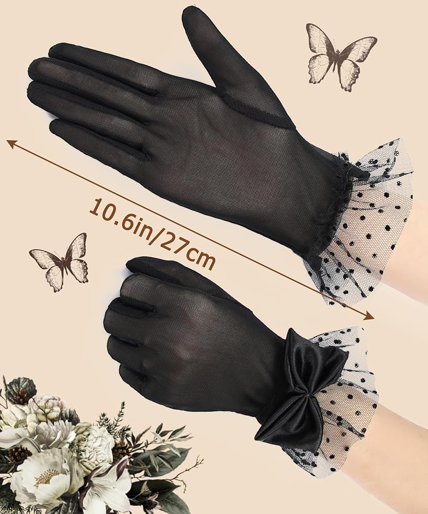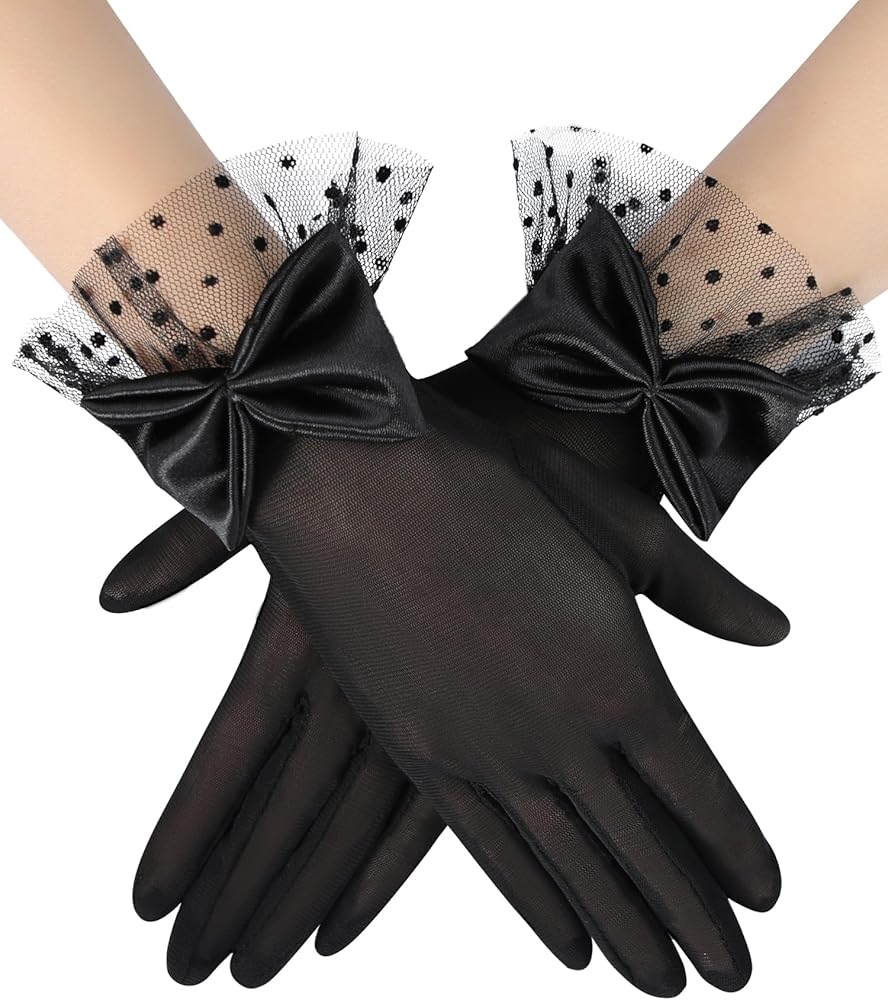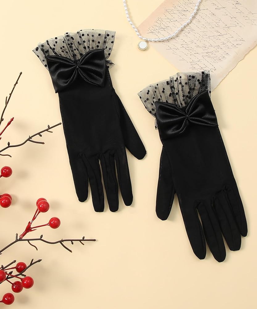 Women's Lace Gloves Tea Party Gloves Sheer Princess Gloves Costume Mesh Bow Short Gloves Evening Wedding Gloves