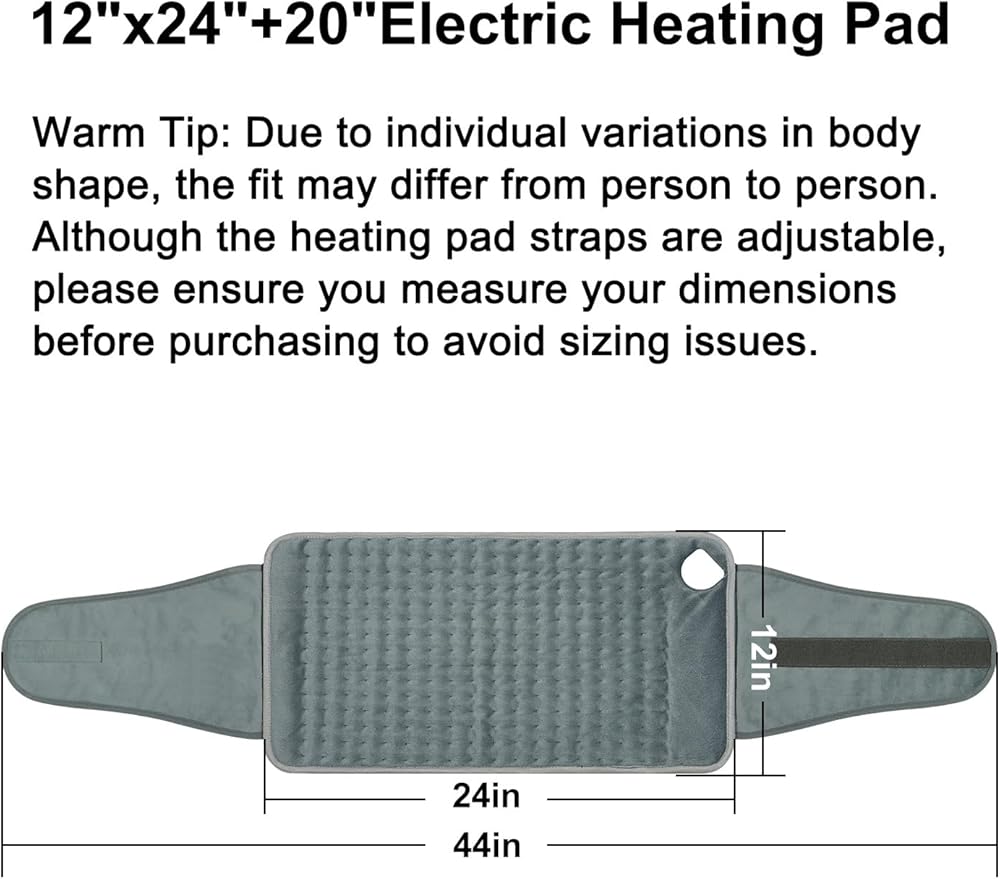 وسادة التدفئة لتخفيف آلام الظهر ، وسادة التدفئة الكهربائية لفترة تشنجات على أكتاف الرقبة مع حزام ، 4 توقيت 6 إعداد الحرارة وإغلاق السيارات ، 12 "x24" +20 "وسادة حرارة رطبة كبيرة لأمي ، أبي