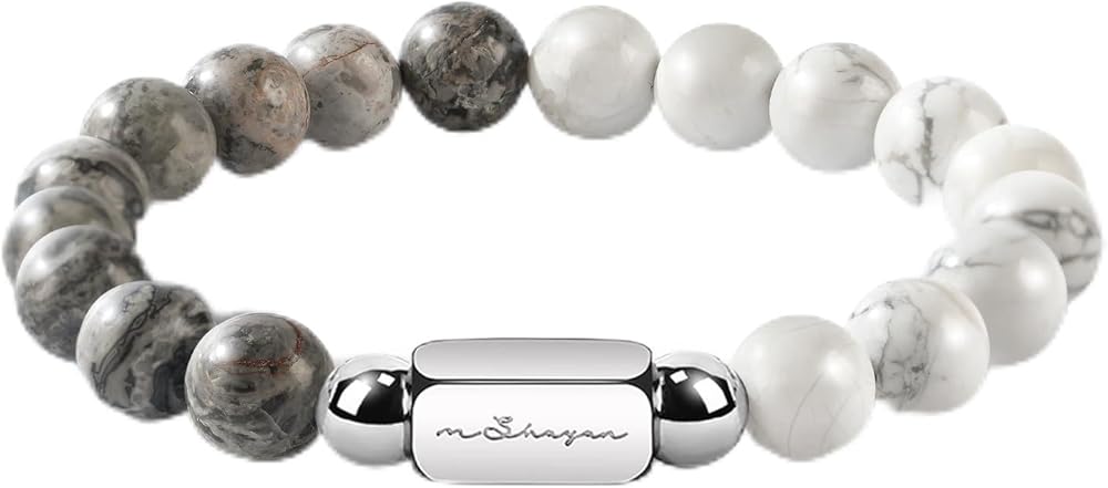 【المادة : كل حبة (10 مم) عبارة عن أحجار طبيعية مختارة بعناية. الأحجار الكريمة وكرات الفولاذ المقاوم للصدأ على سلك مرن عالي.