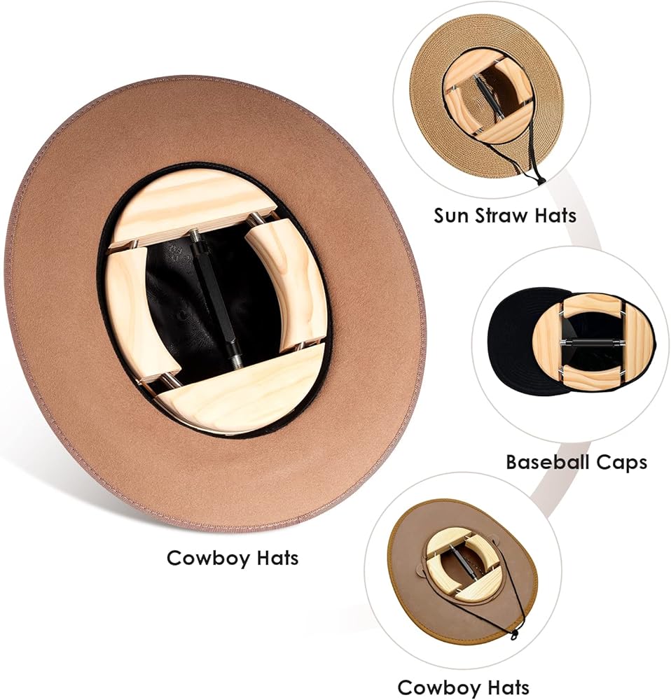 مناسبة لمعظم القبعات: يتم تطبيق نقالة القبعة هذه للحصول على قبعات البيسبول ، وقبعات رعاة البقر ، والبركان ، وقبعات الطراز الشمسي ، والقبعات المحسوسة ، وما إلى ذلك.