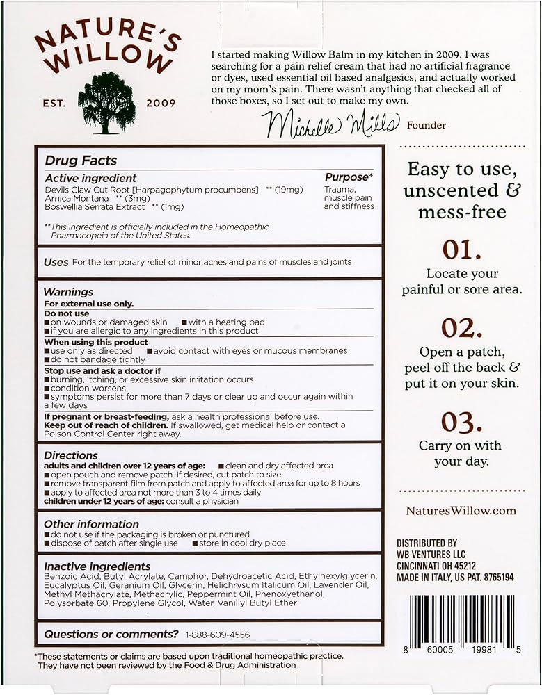 بقع تخفيف الصفصاف الطبيعة-الحل الموضعي السريع المفعول ، والموضعية للنبات للمساعدة في تعدد العضلات والمفاصل | 6 بقع لكل عبوة | 1 حزمة